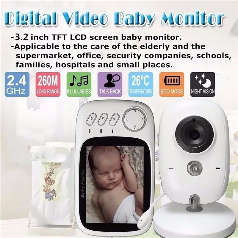 3,2 дюймов Беспроводной Видеоняни и радионяни 2Way разговор детский няня безопасности Камера Ночное видение Температура мониторинга 8 колыбельные VB603