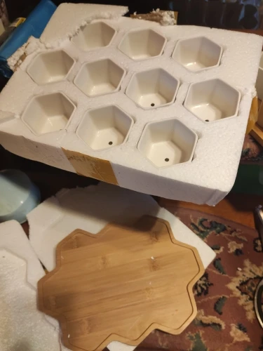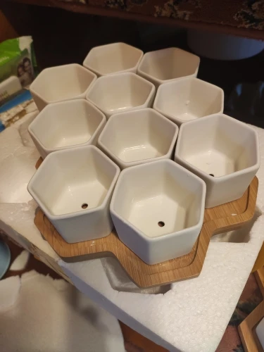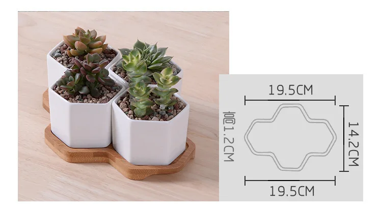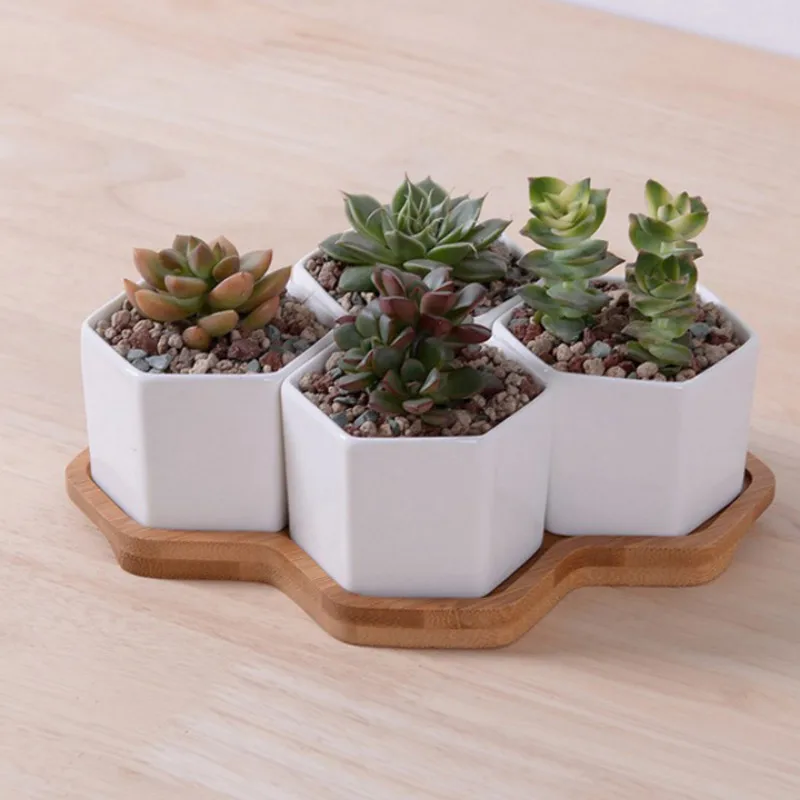Набор из 47910 шестигранных цветочных горшков, белый керамический горшок для суккулентов с бамбуковой подставкой, украшение для дома, офиса, Рождества, нового года