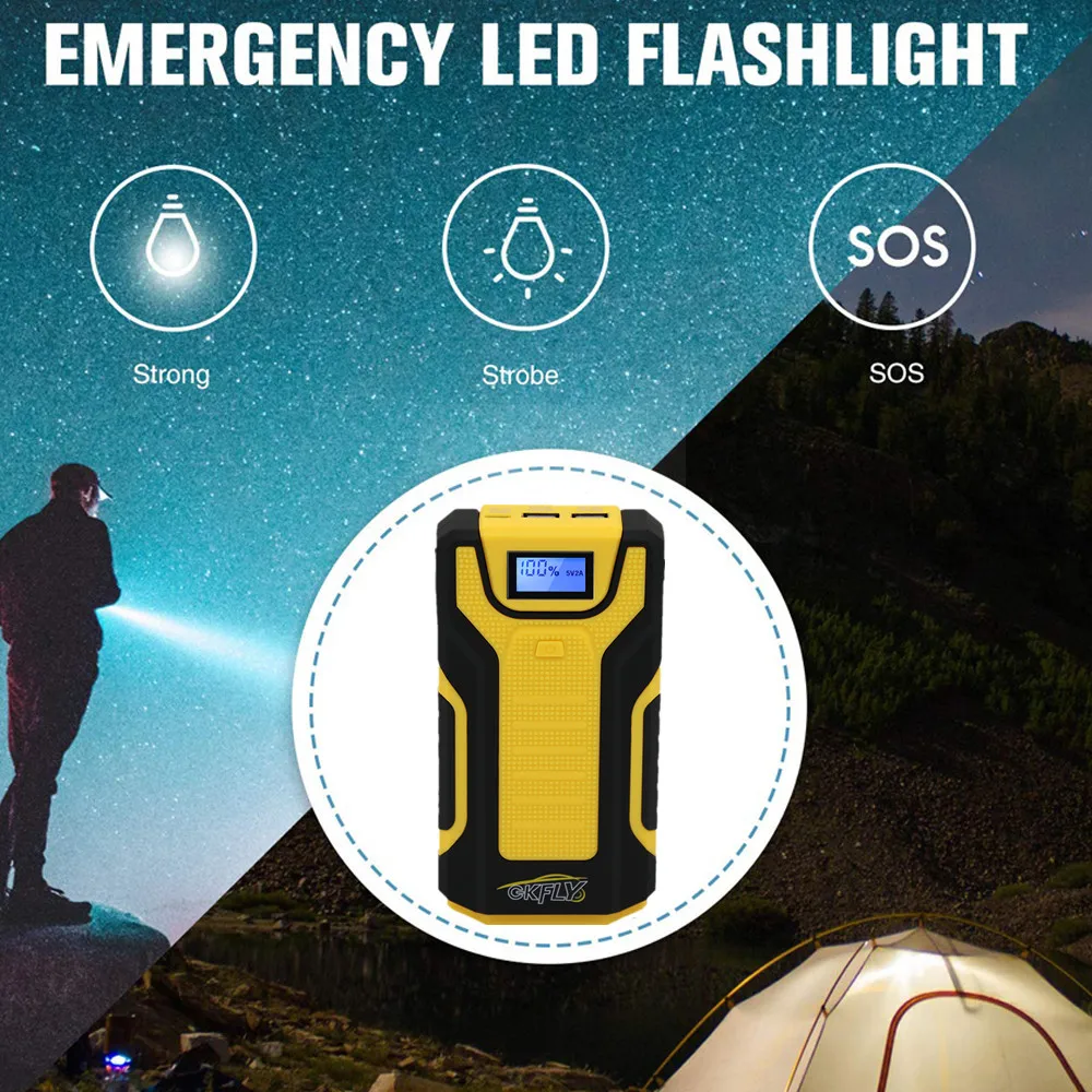 1200А аварийный автомобильный стартерБыстрый запуск 12V бензиновый автомобиль (до 5.0L) и дизельный автомобиль (до 2.5L) за считанные секунды в тех случаях, когда автомобильного аккумулятора. Когда вы едете в неизвестном месте, и ваш автомобильный аккумулятор не работает, вы можете использовать этот автомобильный стартер, чтобы начать свой автомобиль.