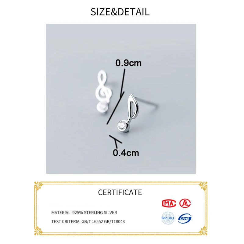 Название: Модные асимметричные серьги-гвоздики с музыкальными нотами 925 пробы серебряные Изящные ювелирные изделия серебряные серьги Размер: около 0,9 см * 0,4 см, Цвет: серебристый Затычки для ушей: с 4 пластиковыми затычками для ушей Посылка: пластиковая коробка (3,5 см * 3,5 см * 1,8 см) в одном пузырчатом пакете (13 см * 15 см)