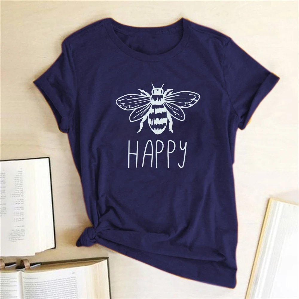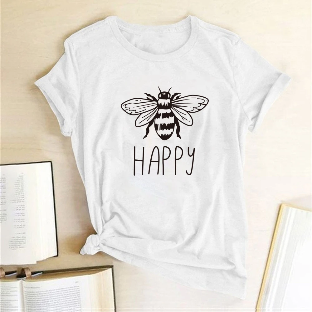Женская хлопковая Футболка с круглым вырезом, коротким рукавом и принтом пчелы