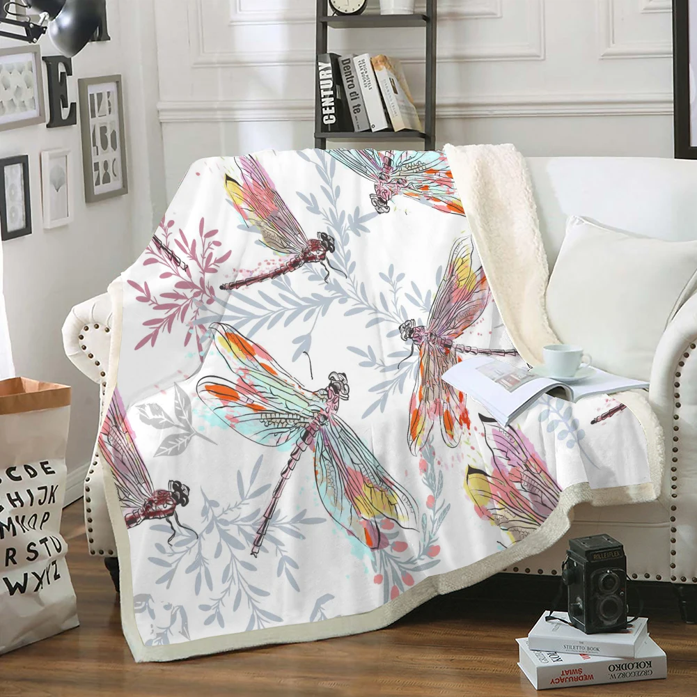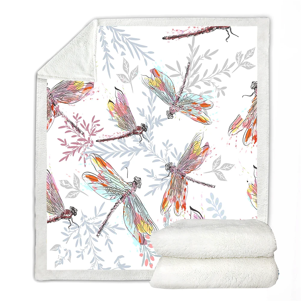 Одеяло со стрекозой цветные растения, одеяло, насекомое, шерпа, Флисовое одеяло, мягкое теплое плюшевое одеяло для кровати, дивана