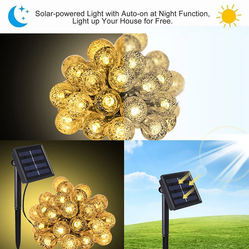 20/50/100 светодиодный S хрустальный шар 5 м/7 м/12 м Солнечная лампа мощность светодиодный гирлянда сказочные огни гирлянды на солнечной энергии Сад Рождественский Декор для улицы
