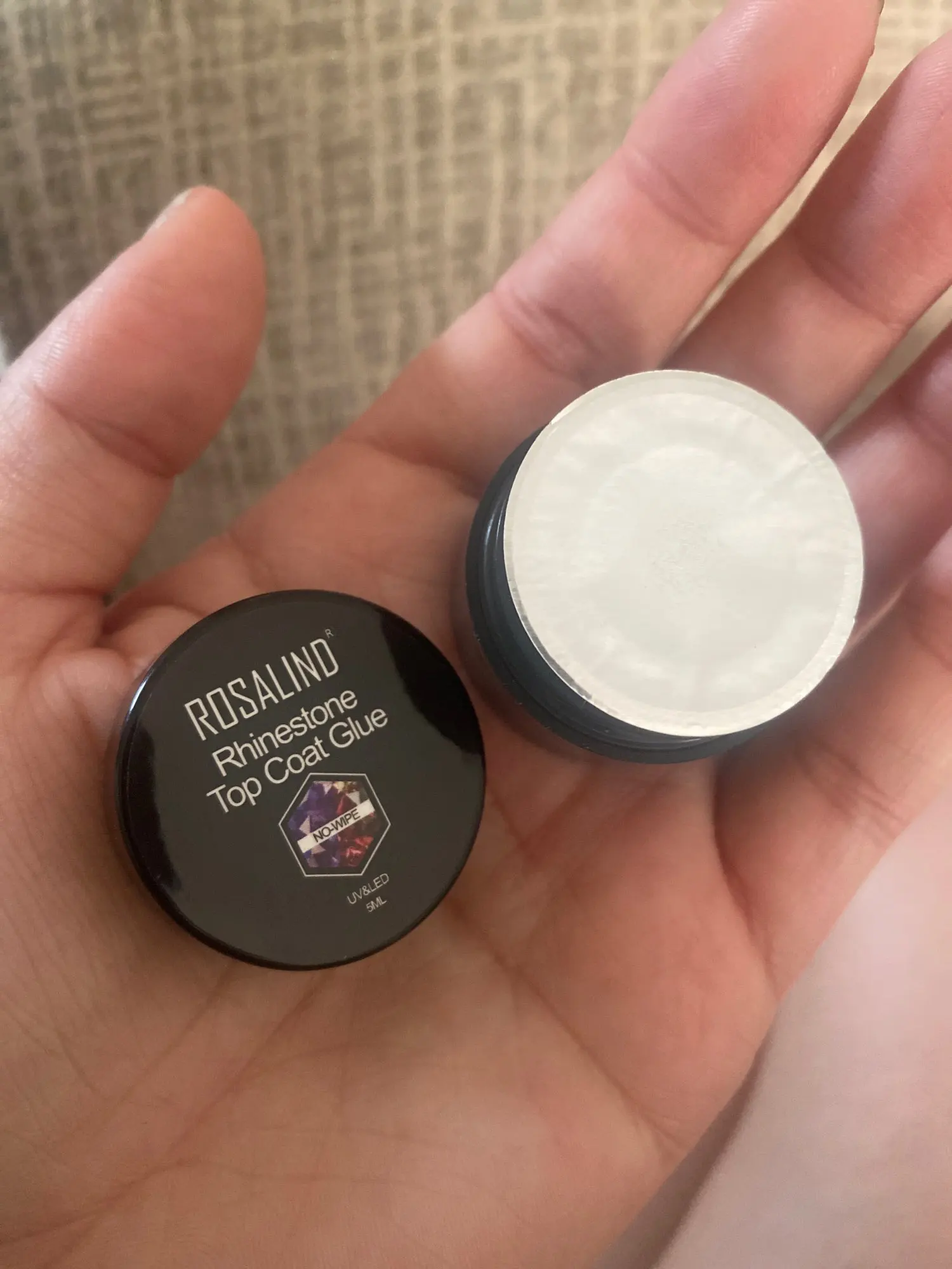 Perfect .. The gems stick very well .. They stick for atleast 2 weeks without a problem .. I love that the glue and top coat are in one .. This saves you a lot of trouble and time .. You can evenly paint this product on the finished nail, stick gems on it and just cure under a UV / led lamp .. You dont need to wipe your nails, beacause there is no sticky layer.. Delivery took 52 days ..