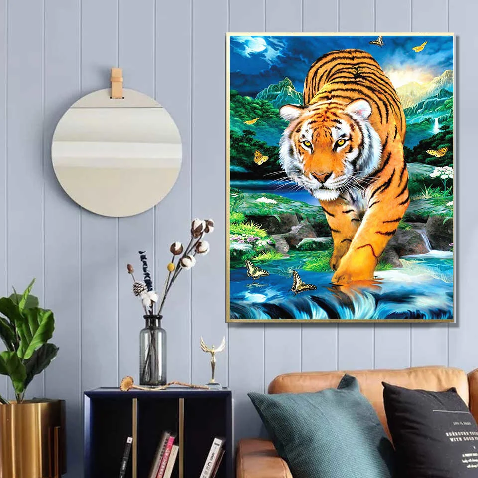 AZQSD Алмазная вышивка тигра, наборы крестиков, ручная работа, 5d алмазная живопись, аниамл, полностью квадратная дрель, настенная наклейка