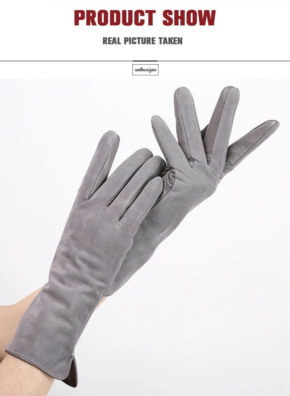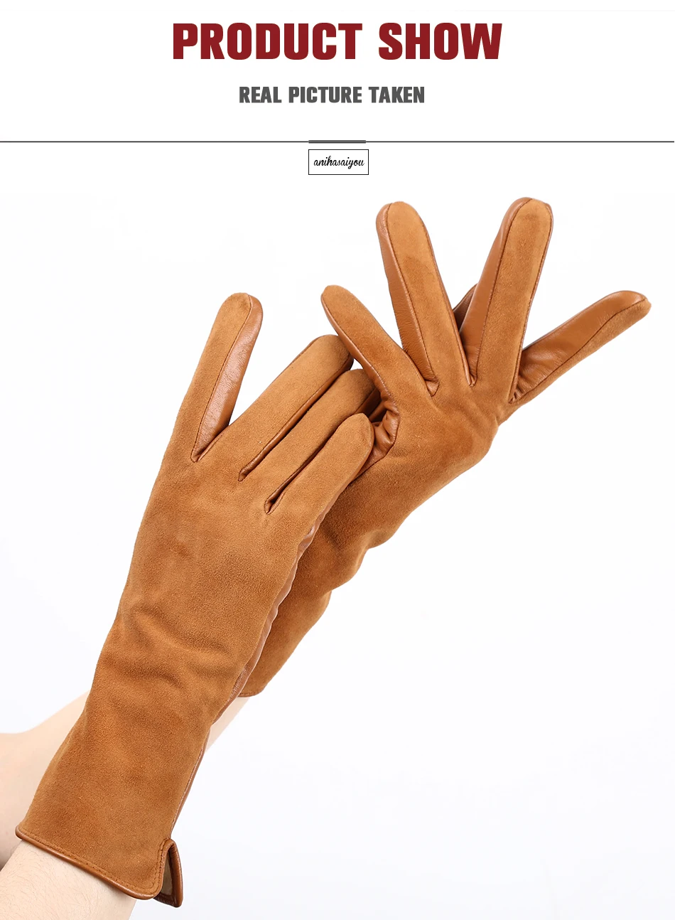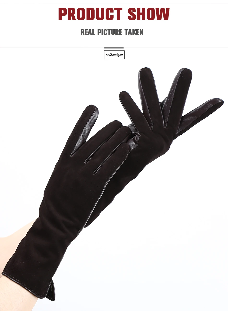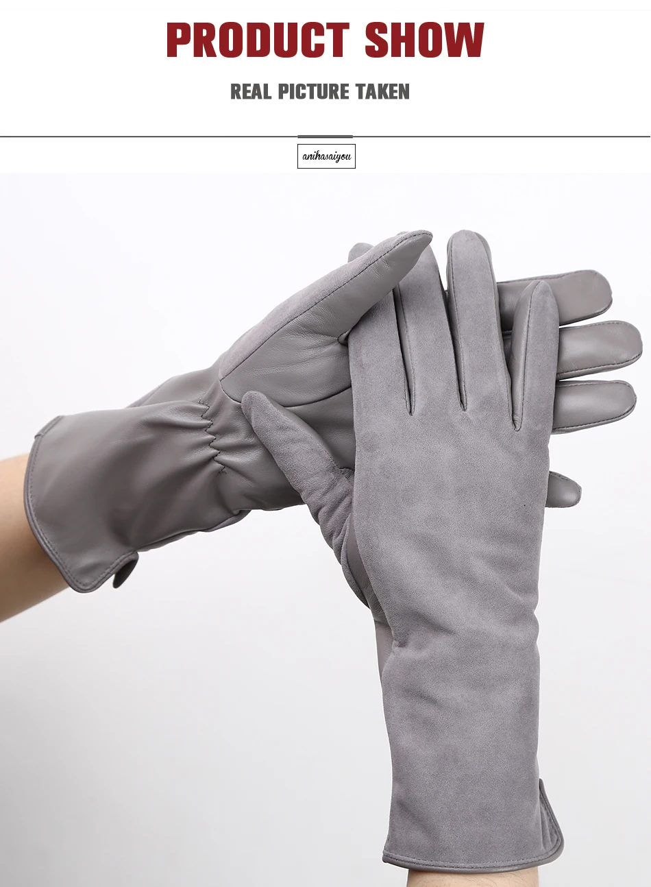 Перчатки женские зимние длинные из 50% натуральной кожи, 50%-2008