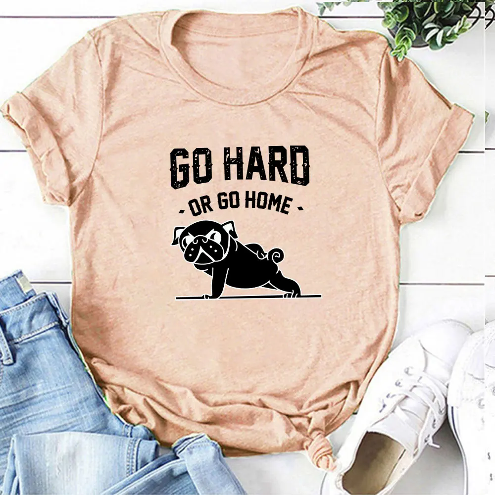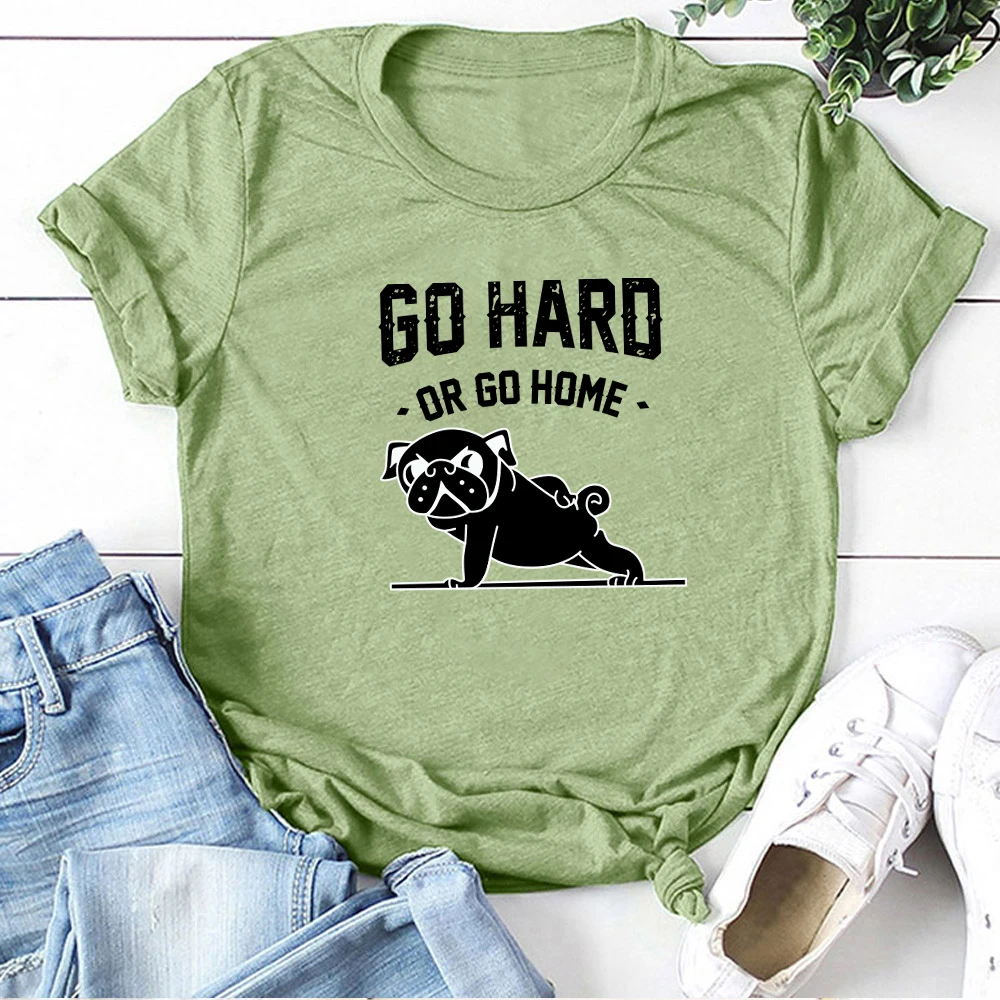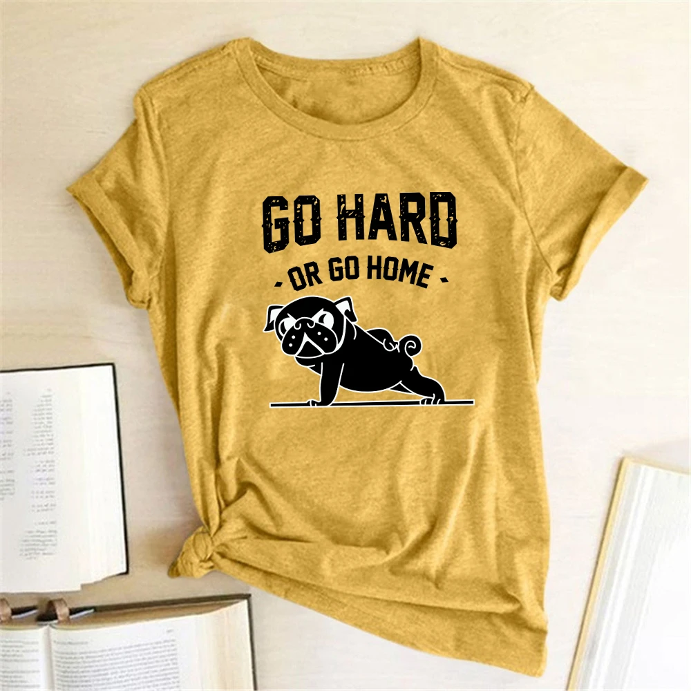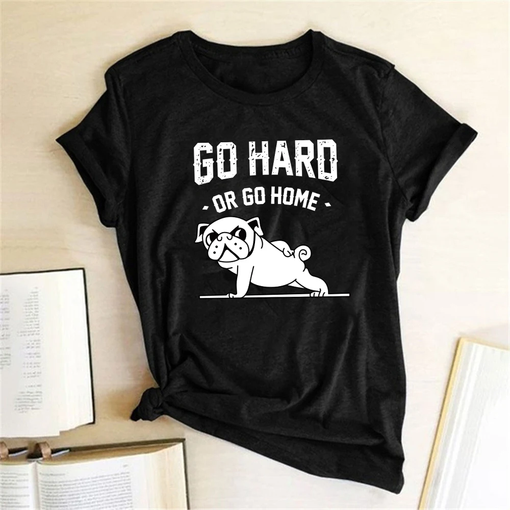 Женские футболки с принтом Go Hard or Go Home, летние футболки с графическим принтом, уличная одежда, повседневные топы для подростков, одежда в стиле Харадзюку с круглым вырезом