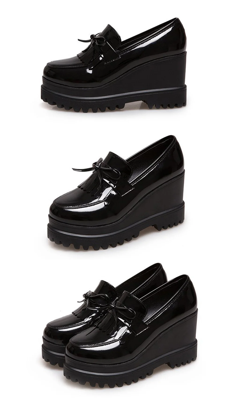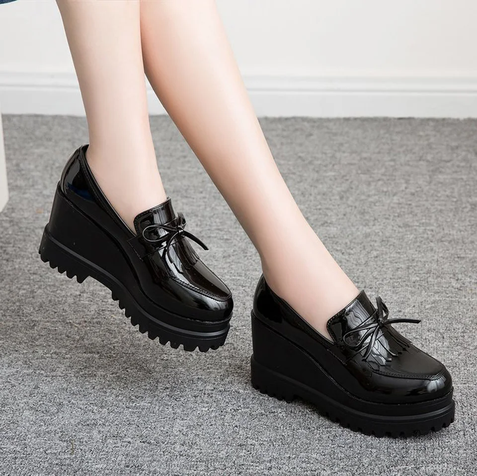 Туфли Ngouxm женские на танкетке, повседневные Элегантные туфли-лодочки с бантом-бабочкой, очень высокие (8 см), черные, модная обувь на платформе