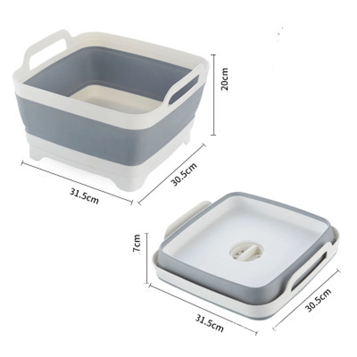 Силиконовая ванна для посуды, складная, со сливной пробкой, ручки д...