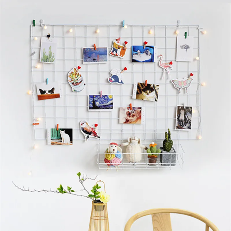 Современное домашнее настенное украшение, железная сетка, Декор, фоторамка, настенный художественный дисплей, сетчатая полка для хранения, органайзер, открытки, сделай сам, стойка, держатель