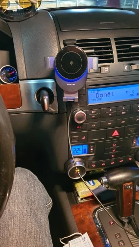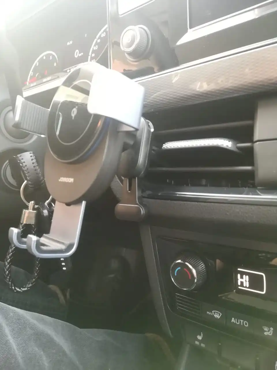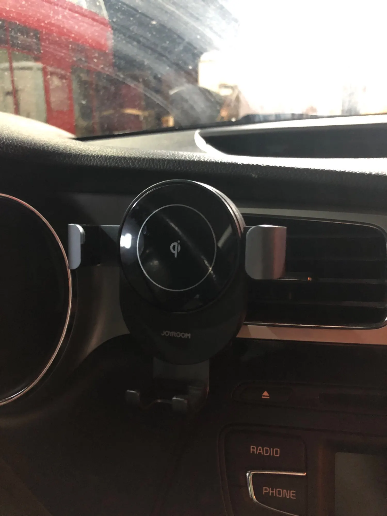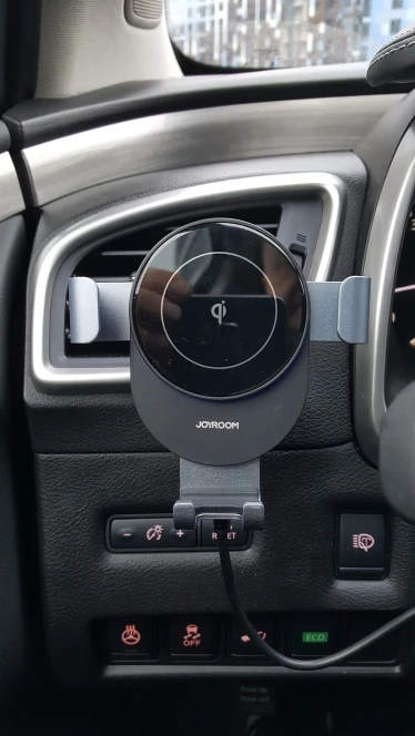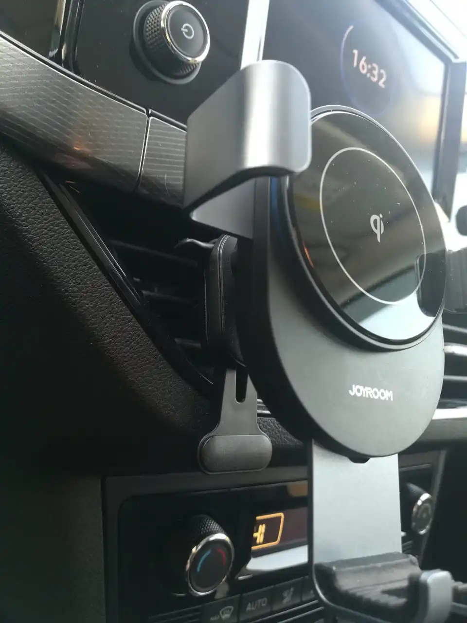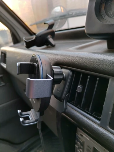 Тот, кто использует Беспроводное зарядное устройство, будет знать, насколько это удобно. Воздуховод на левой стороне моего руля не подходит для зажима, и воздуховод на правой стороне очень плотно зажимается, и вождение качается И зарядка не такая хлопотная, как у старого кронштейна. Очень прост в использовании.