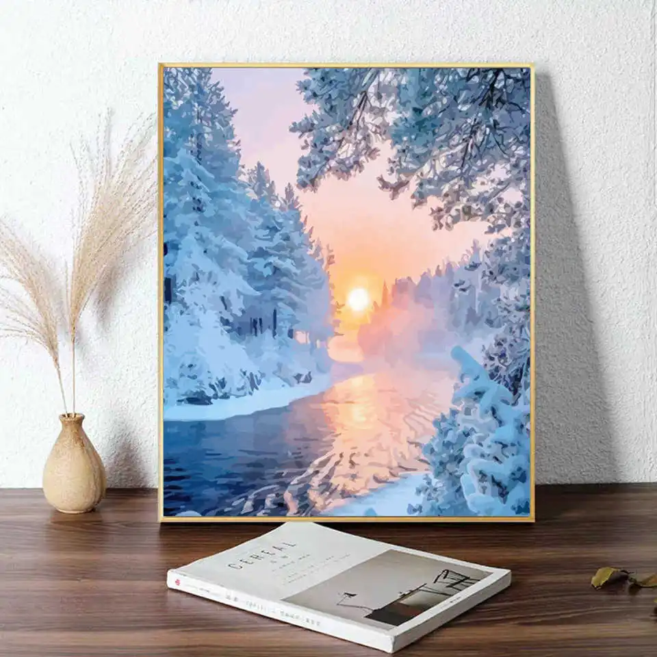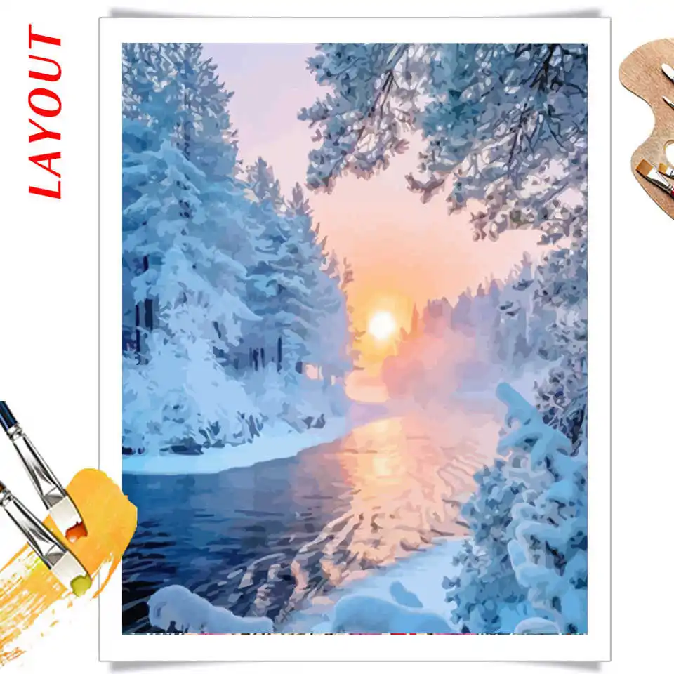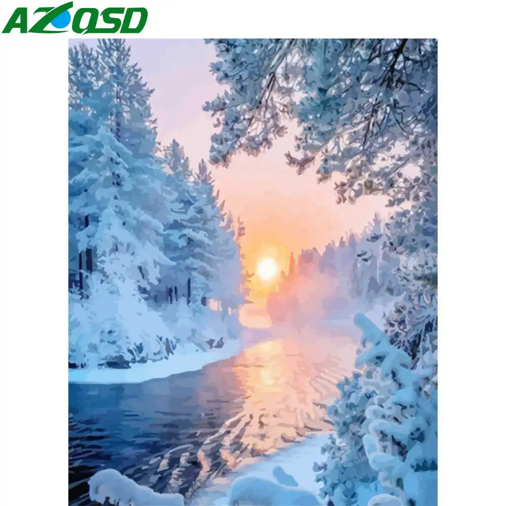 AZQSD зимняя картина по номерам пейзаж картина маслом по номерам Декор для дома с лесным пейзажем ручная роспись Безрамное Diy искусство подарок