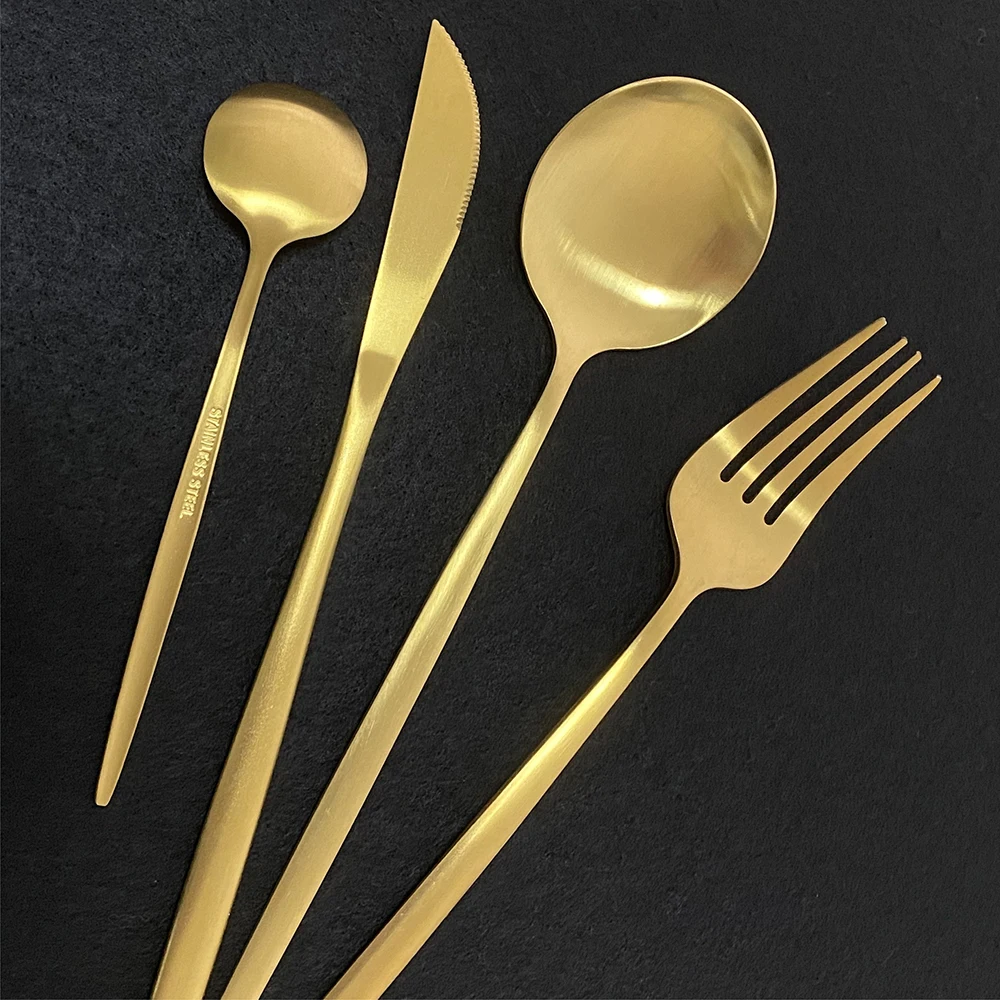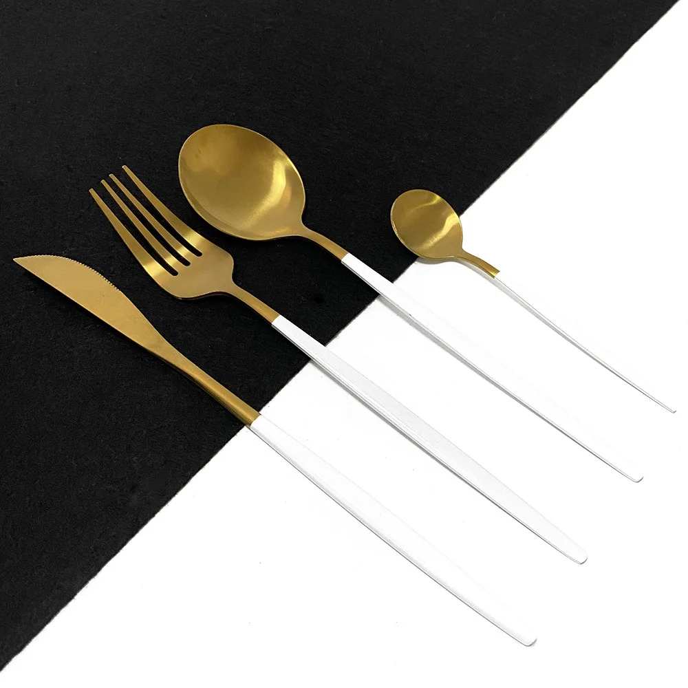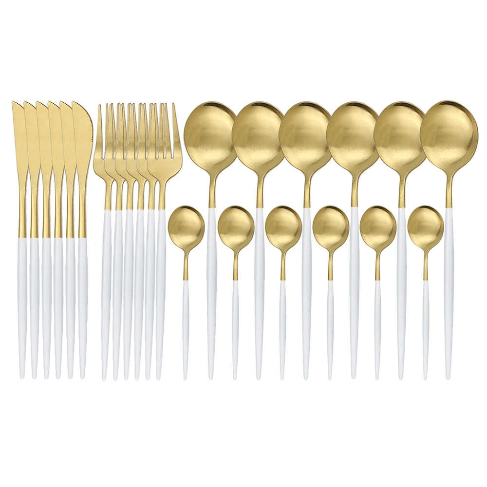Набор посуды из 24 предметов из матового белого золота, 304 дюйма, нержавеющая сталь, нож, вилка, столовый набор, кухонная посуда, столовая посуда
