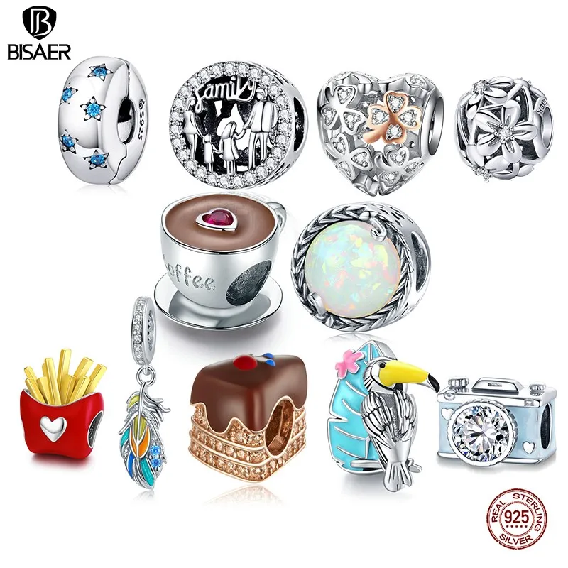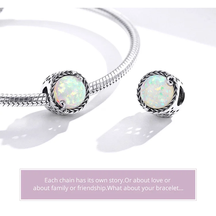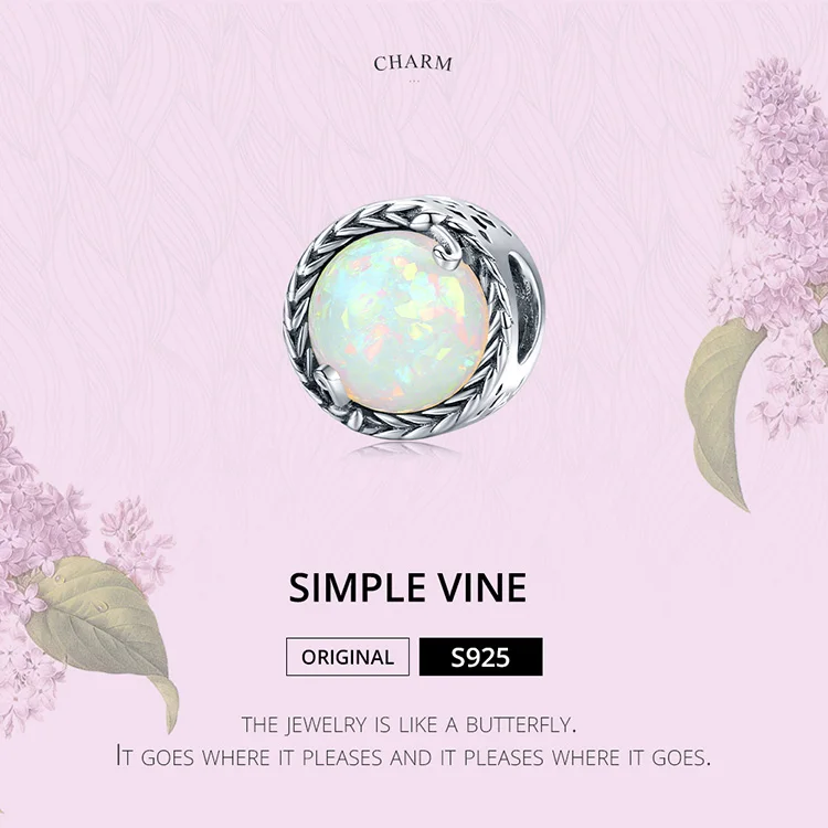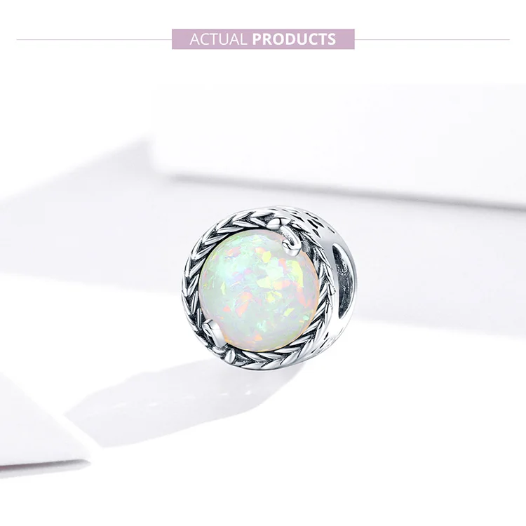 Винтажные бусины с лозой BISAER, круглые подвески из стерлингового серебра 925 пробы с опалом, блестящий кулон для браслета, ожерелья, ювелирные изделия сделай сам ECC1576