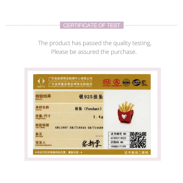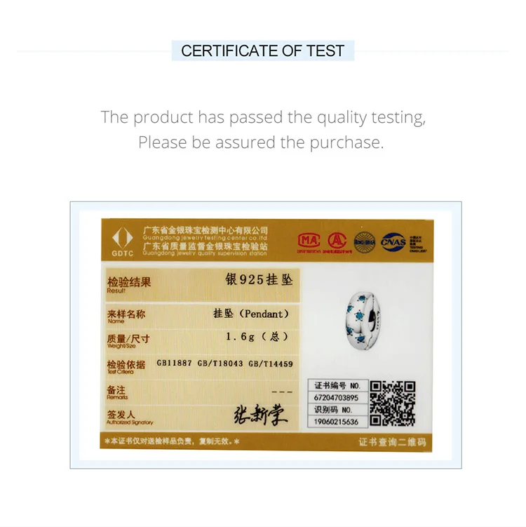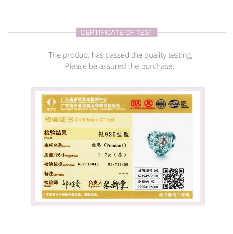 Номер СертификатаReal 100% 925 Sterling silver bead Charms