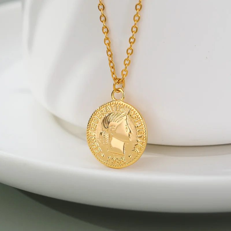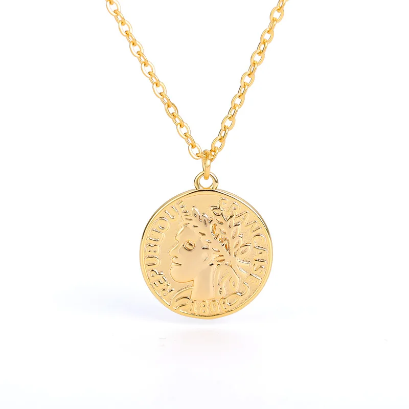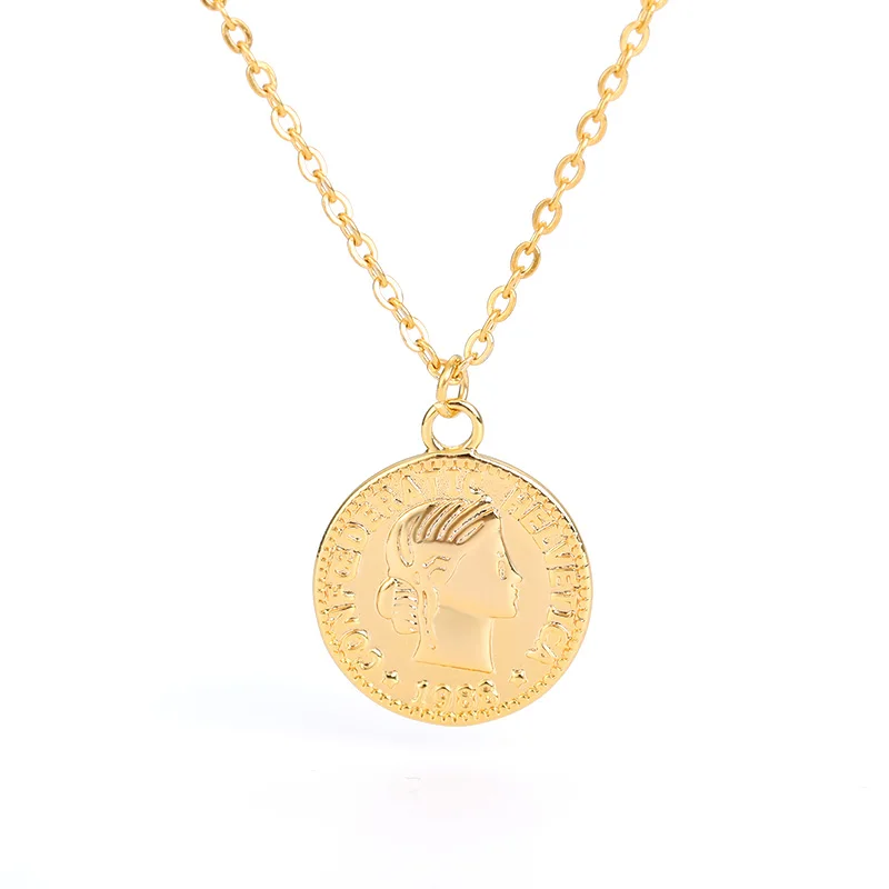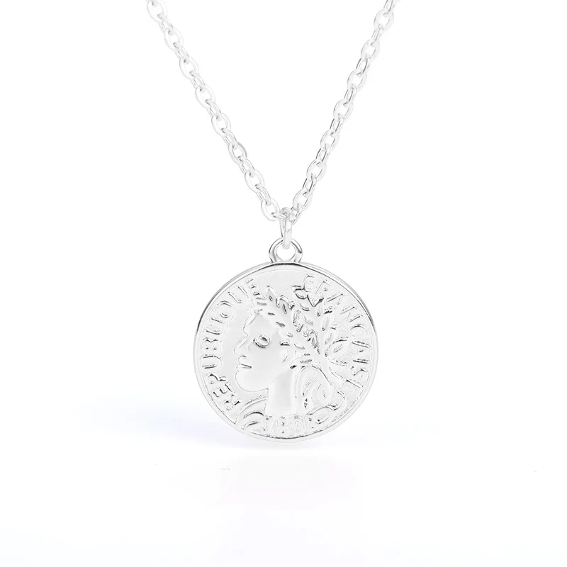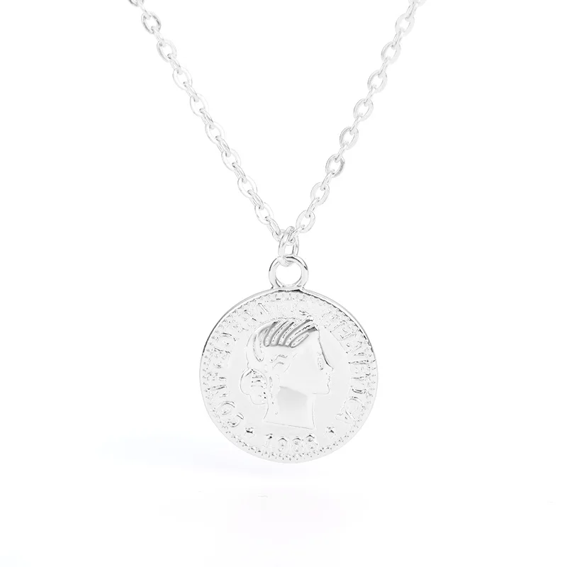 Ретро Золотой Серебряный цвет Портрет Круглый Сплав Монета кулон ожерелье центр большая цепочка колье ожерелье женские вечерние Ювелирные изделия Подарки