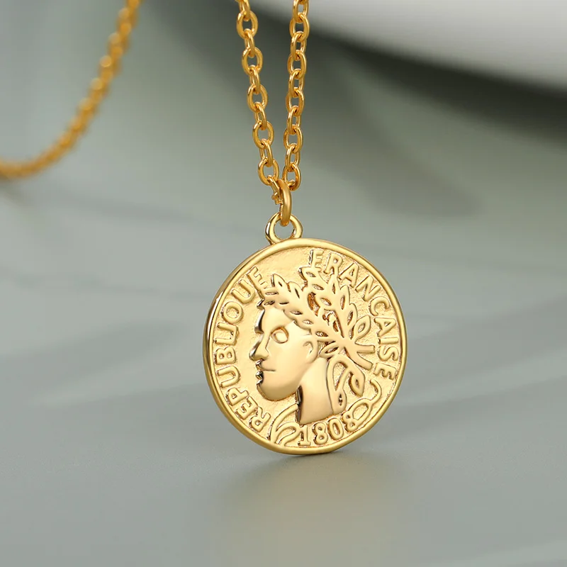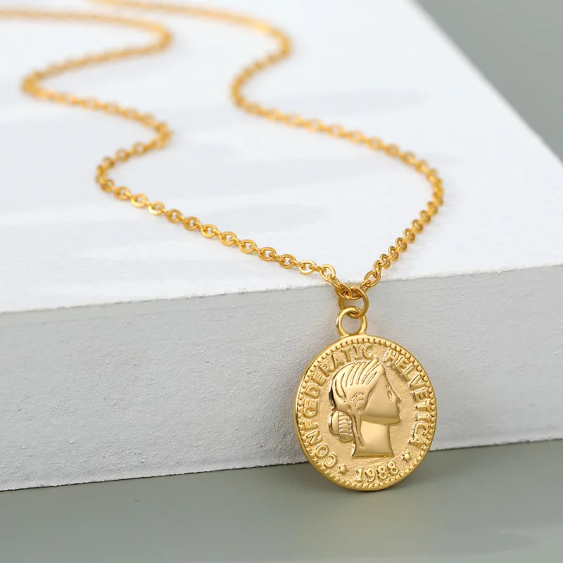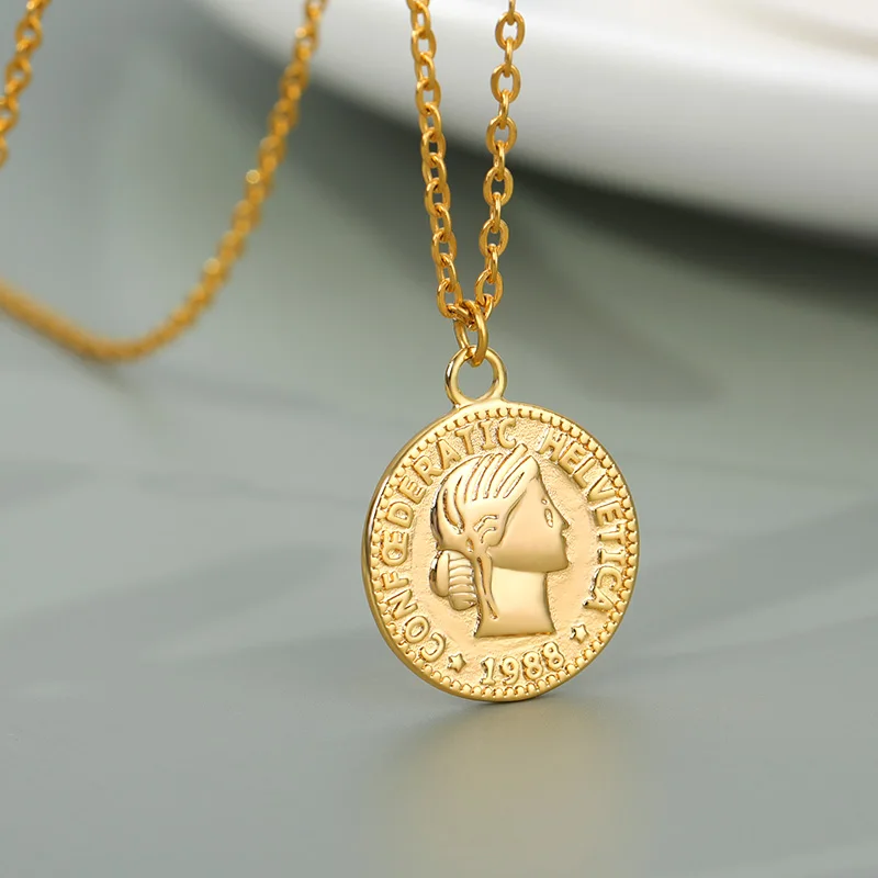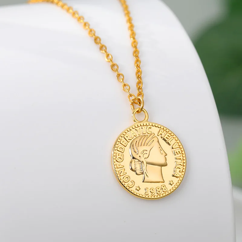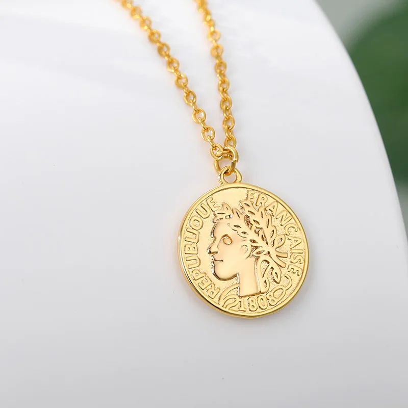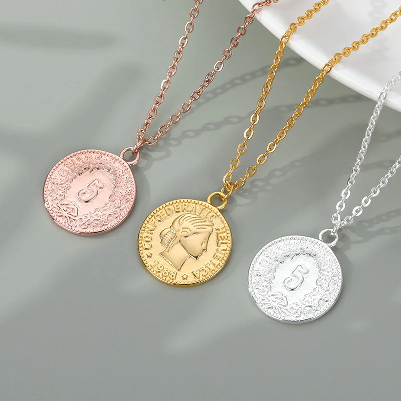 Ретро Золотой Серебряный цвет Портрет Круглый Сплав Монета кулон ожерелье центр большая цепочка колье ожерелье женские вечерние Ювелирные изделия Подарки