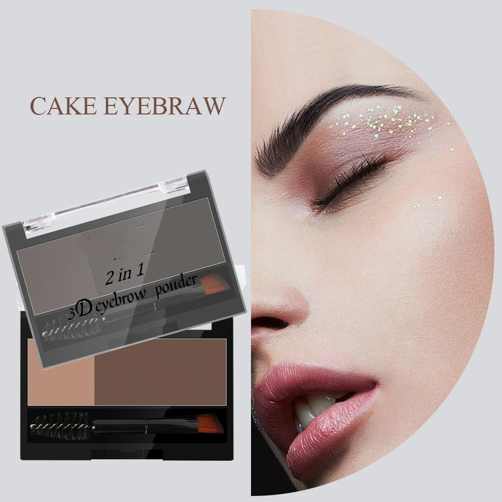Двухцветная пудра для бровей, палитра для макияжа, натуральные коричневые тени для бровей, 3d-тени для бровей, кондитерский Набор для красоты с кисточкой