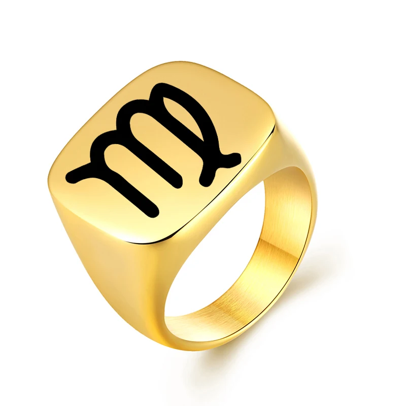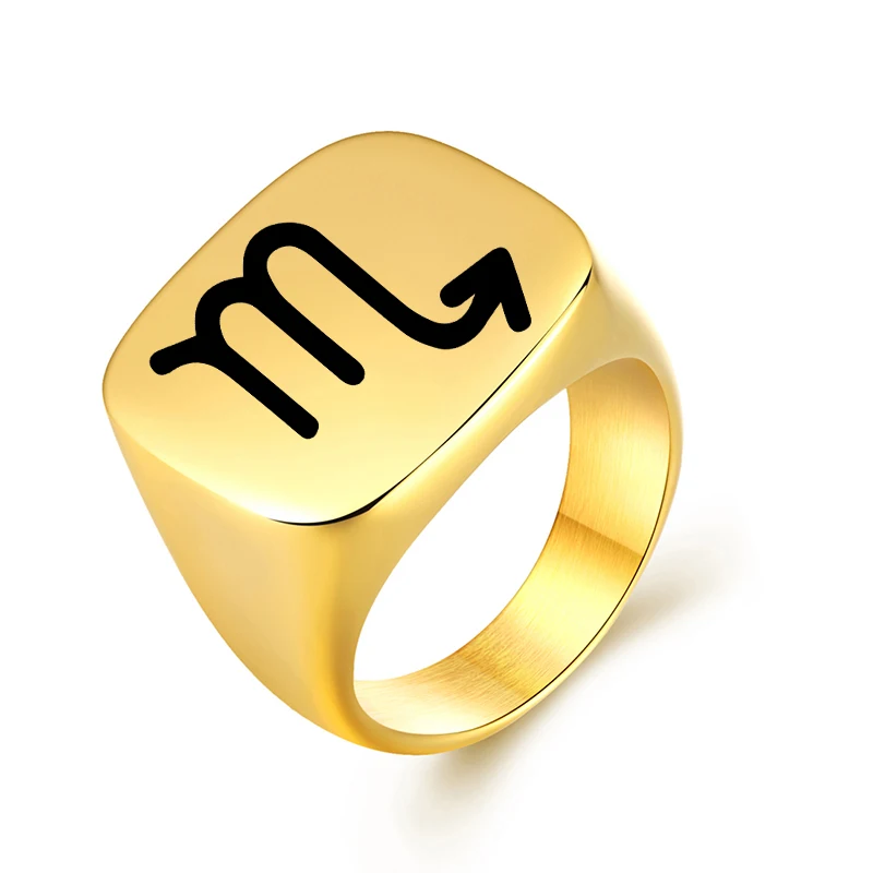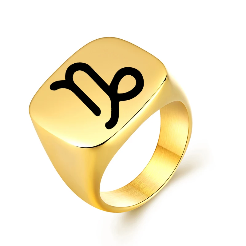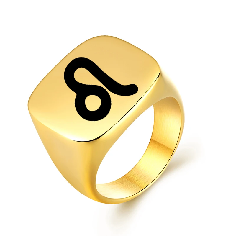 Кольца из нержавеющей стали с 12 созвездиями для мужчин и женщин, подарок на день рождения, квадратные золотые кольца с Овен, Лев, аквариум, Скорпион, рак