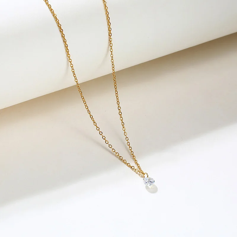 Ожерелье с кубическим цирконием, женский кулон с кубическим цирконием, простое Изысканная Золотая Минималистичная бижутерия из нержавеющей стали