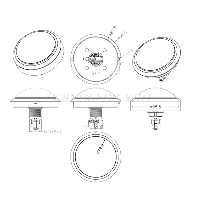 100 мм, большая круглая кнопка, светодиодный ная подсветка с микропереключателем для самостоятельной сборки, аркадная версия, большой купольный светильник ель света, 12 В постоянного тока