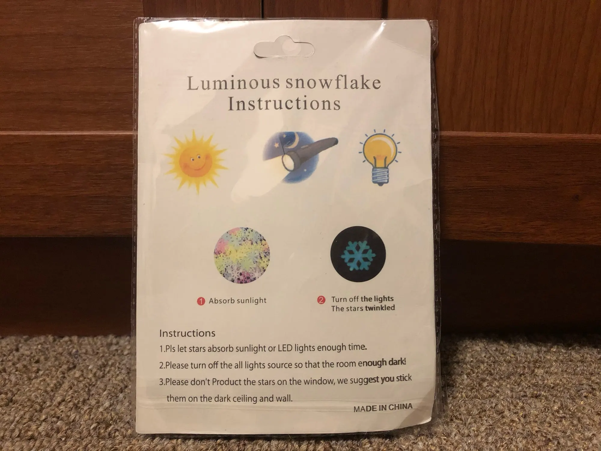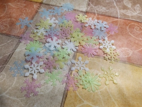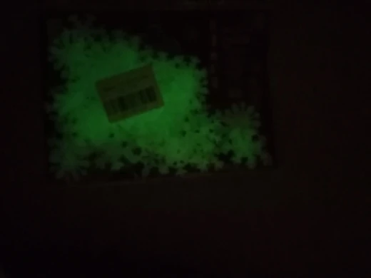 Отличные снежинки около 2 см около месяца доставка в московскую область. Накапливаются днем свет. Светятся в темноте. Несколько разных видов снежинок наклейки с двойной липучкой можно на стены или потолок крепить.