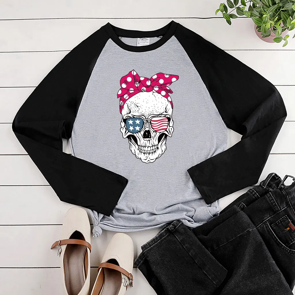 Женская футболка с длинным рукавом Vogue Skull Scarf, с принтом очков, Осень-зима, с графическим принтом, двухцветная стильная женская одежда