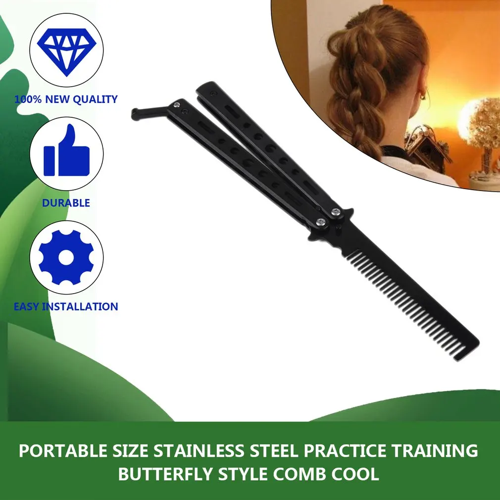 Профессиональный салон из нержавеющей стали складной тренировочный нож бабочка стиль гребень Инструменты для укладки черный/серебристый Прохладный