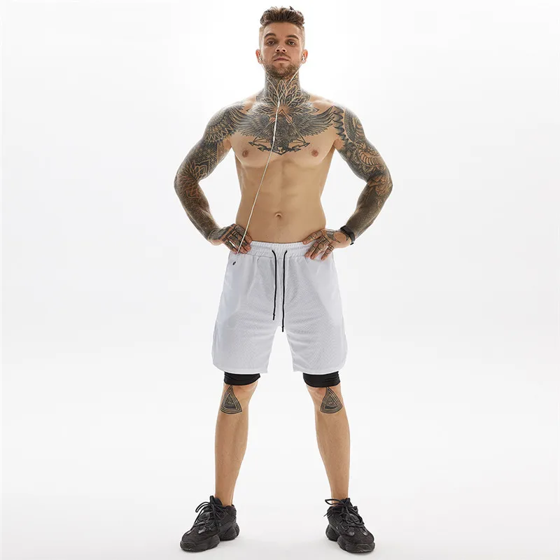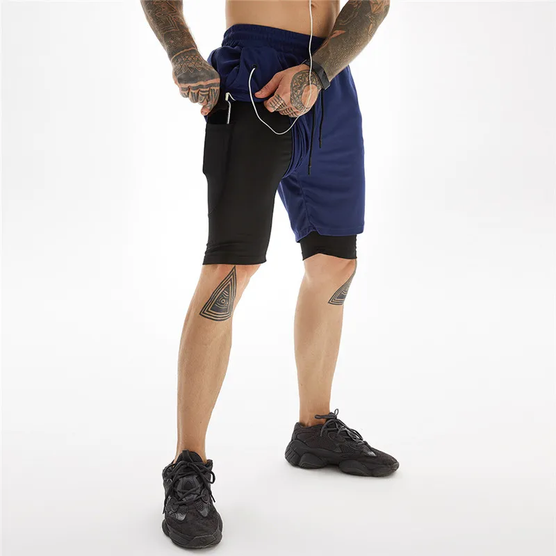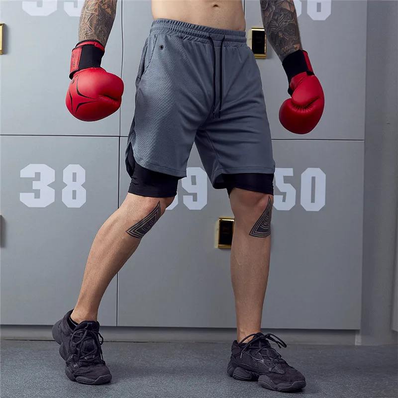 Шорты мужские для фитнеса и бодибилдинга, короткие штаны 2 в 1, Спортивная дышащая быстросохнущая одежда, летние Джоггеры для воркаута