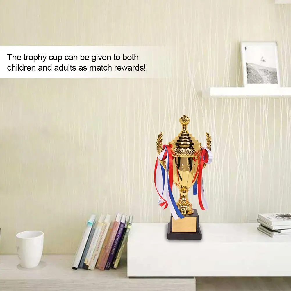Пулевые точки:1. Награда победителя: Этот трофей является символом успеха и представляет все усилия, которые люди прилагают, физически или морально.2. Качественные материалы: трофей изготовлен из железа, покрыт золотом. Основа выполнена из пластика.3. Банты разных цветов: банты разных цветов, включая красные, белые и синие банты.4. Отличные награды за матч: Кубок трофея может быть подарен как детям, так и взрослым в качестве наград за матч!5. Размер товара: Кубок трофея имеет два размера s, с высотой 37 см и 29 см на выбор.Спецификация:Название: Кубок трофеяРазмеры (Прибл.): 37*16 см/14,56*6,30 дюймов; 29*13 см/11,42*5,12 дюймовПосылкаСписок:
