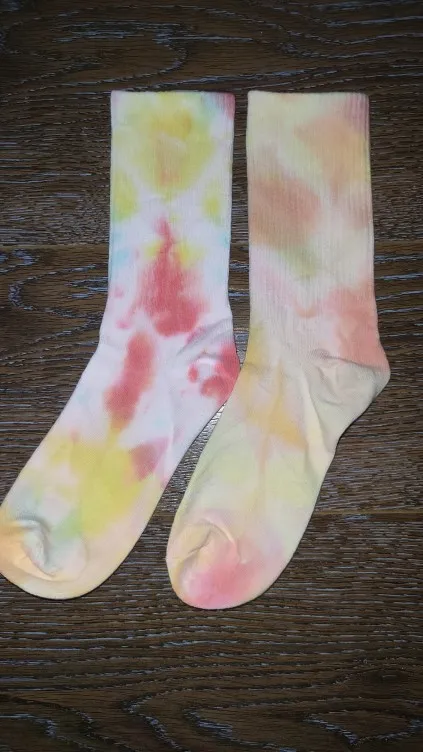 качество кошмар. новые выглядят как уже 100 раз постиранные/поношенные. все в катышках! два носка абсолютно по-разному окрашены, и дело здесь не в особенностях "тай дай". на левом и правом носке просто разные оттенки. доставлены быстро. спор открыла. деньги вернули. к покупке не рекомендую.