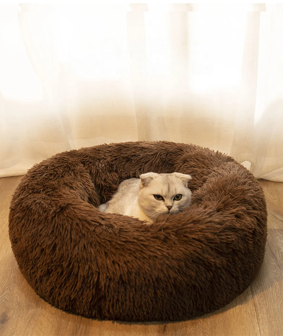 Круглые плюшевые кровати для кошек, плюшевые супер мягкие кровати д...
