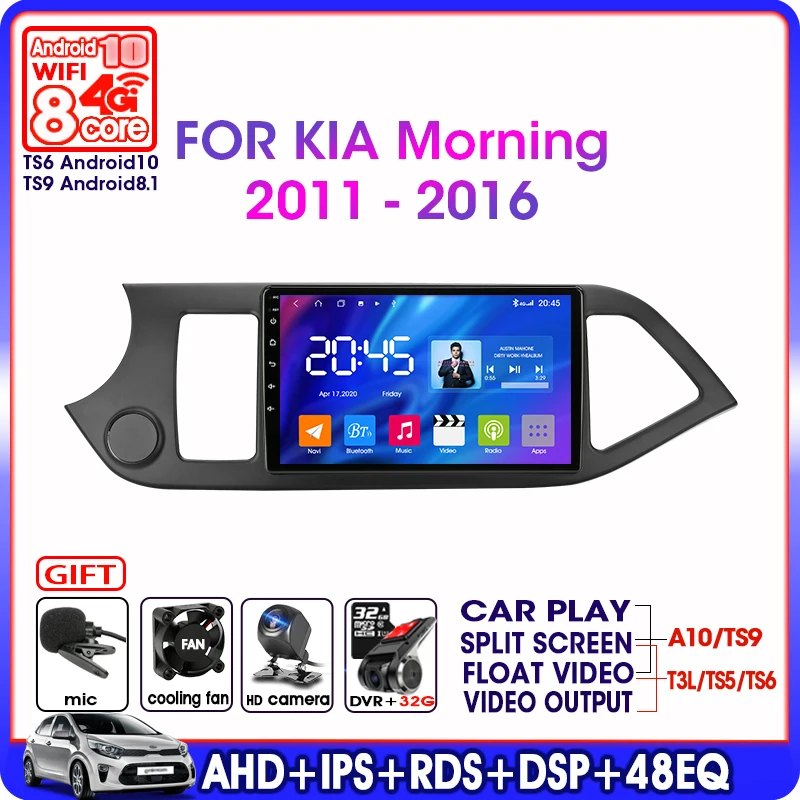 Автомагнитола на Android 10, мультимедийный плеер для KIA PICANTO Morning 2011-2016, GPS-навигация, 4G, 2Din, стерео, головное устройство Carplay, видео