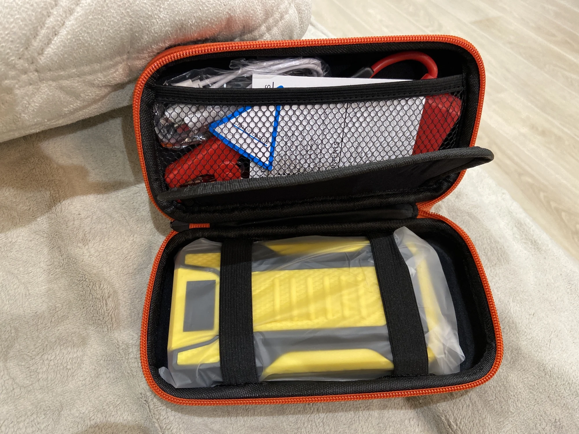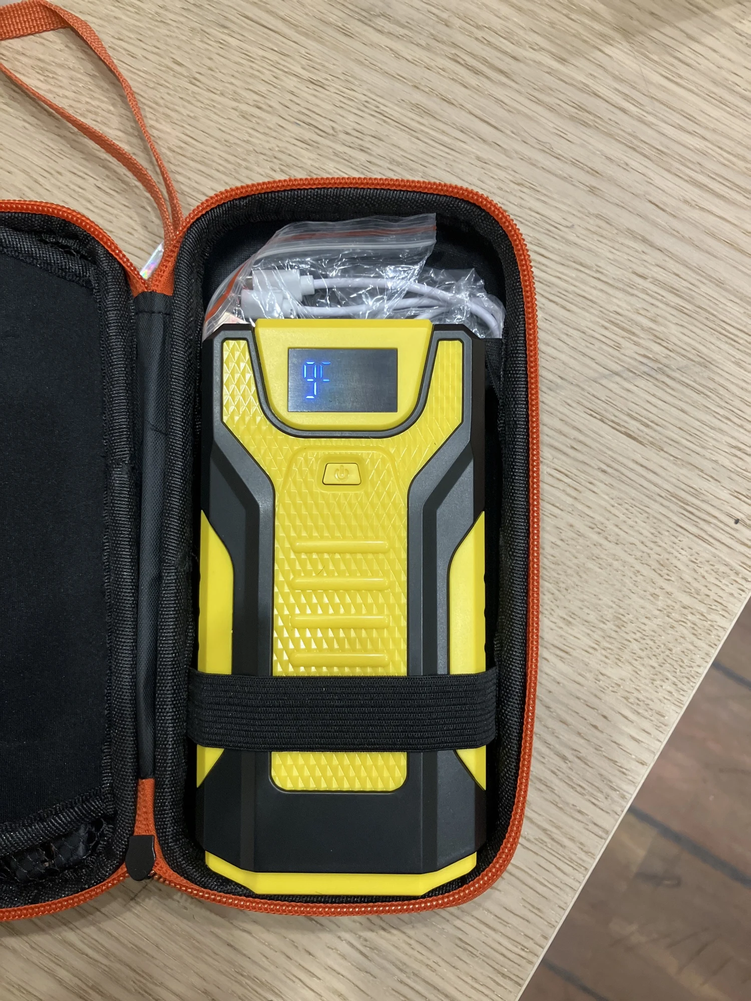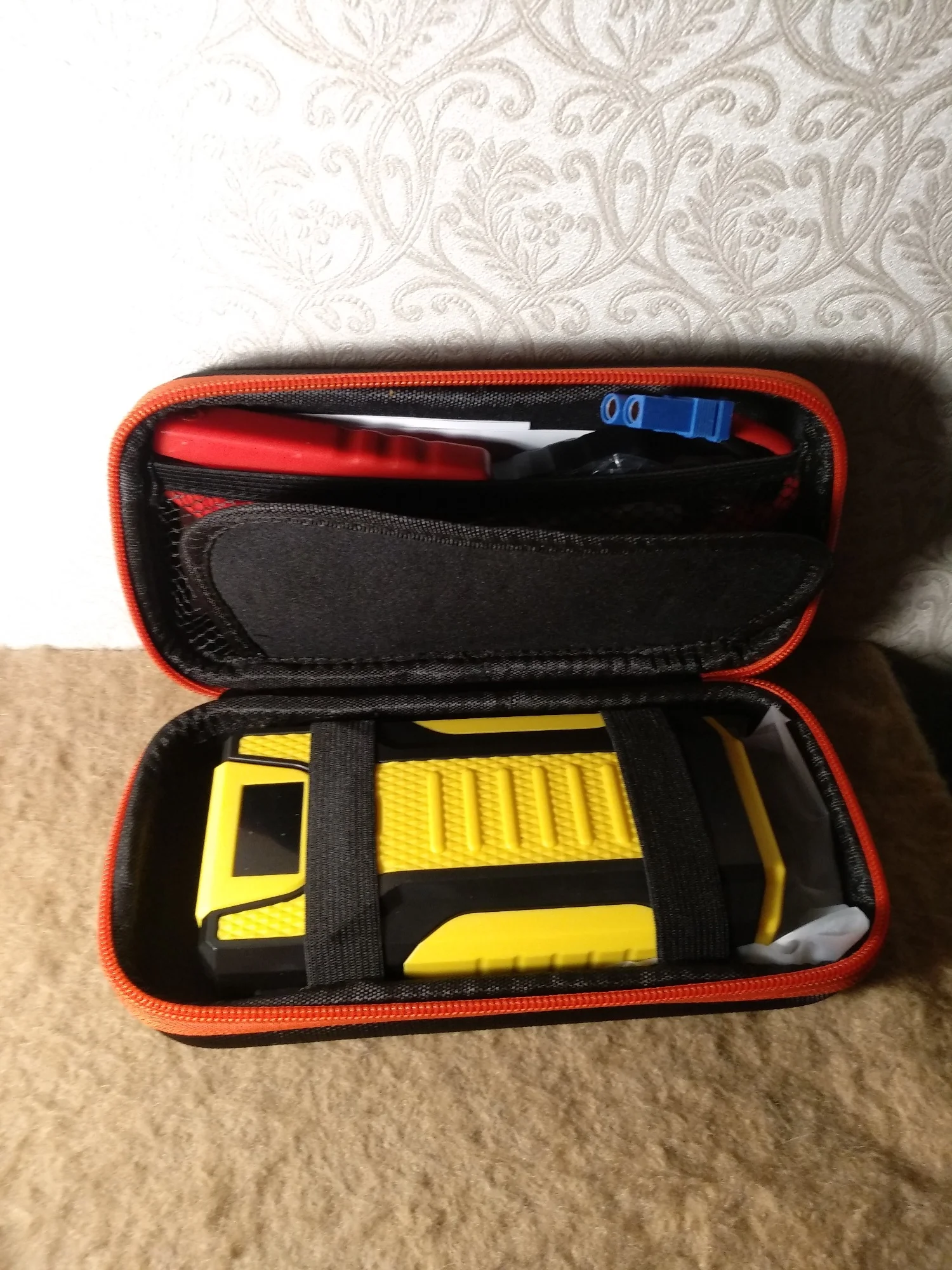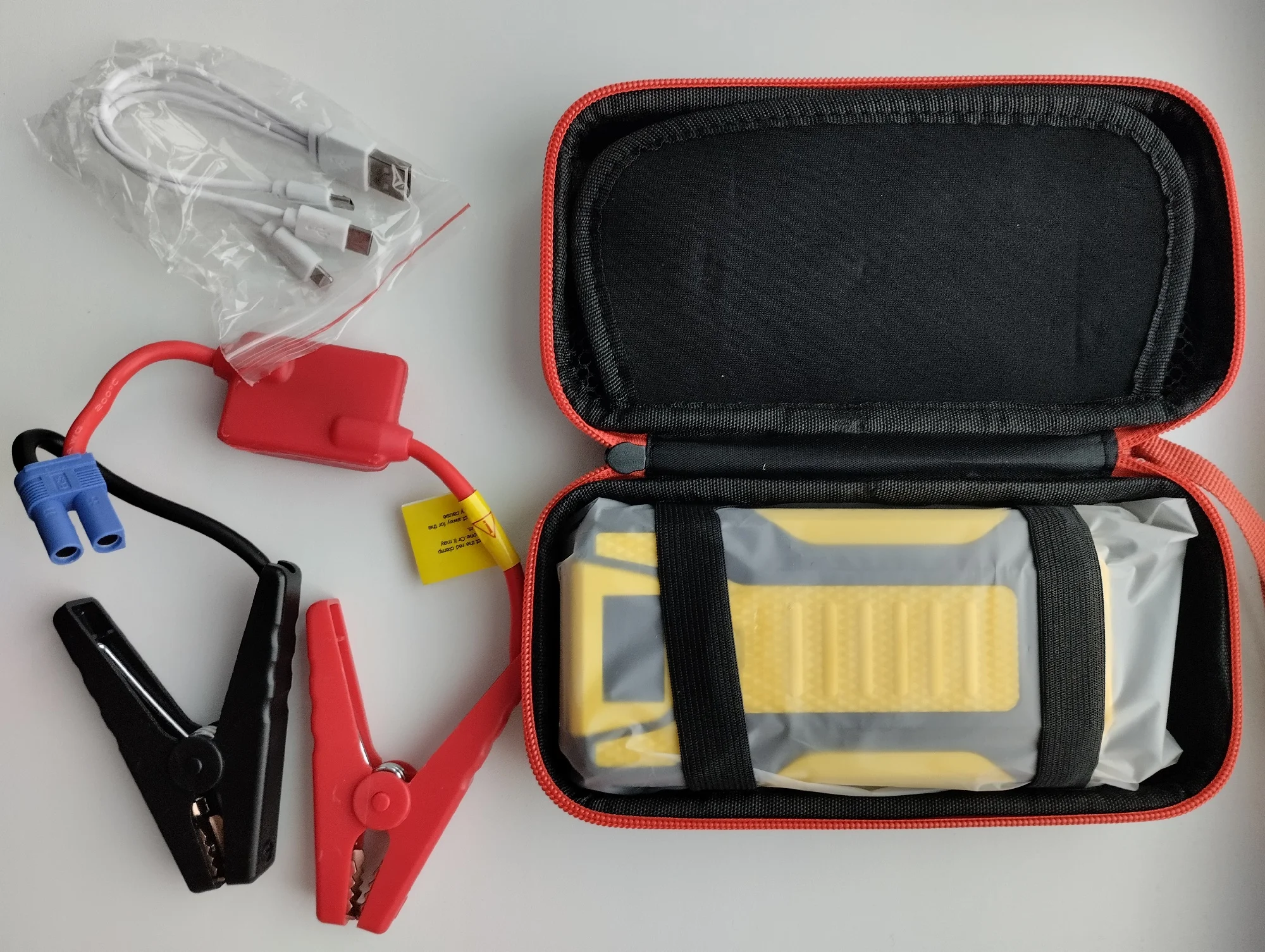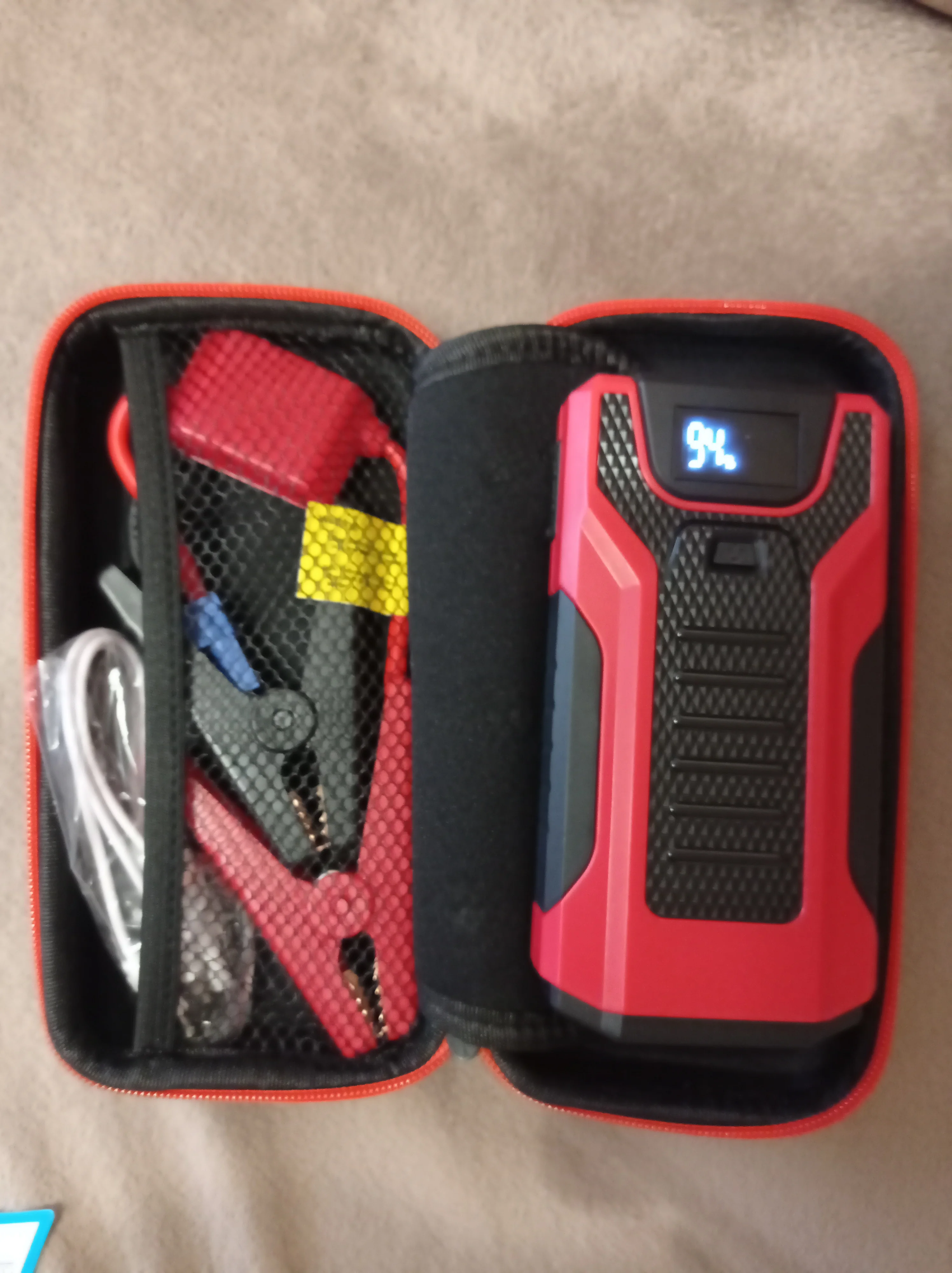 Товар упакован хорошо, пришёл без повреждений, заряжен на 99%. Пробовал заряжать телефоны, и включать фонарик. Машину не прикуривал. Комплектность как на фото.