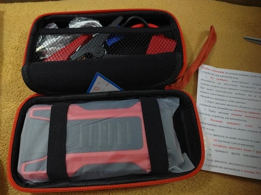 Доставка из России супер быстро! Пришёл 45 %зарядки. После полной зарядки тест - без аккумулятора вообще! Лада веста кросс, пять запусков подряд! Разрядился до 84 %!! Кофр маленький, из твёрдой кордуры! Из минусов, у разьема есть оголенные провода 2-3 мм. Могли и термоусадку поставить!!! В остальном всё хорошо! Рекомендую! Тем более цена просто супер!