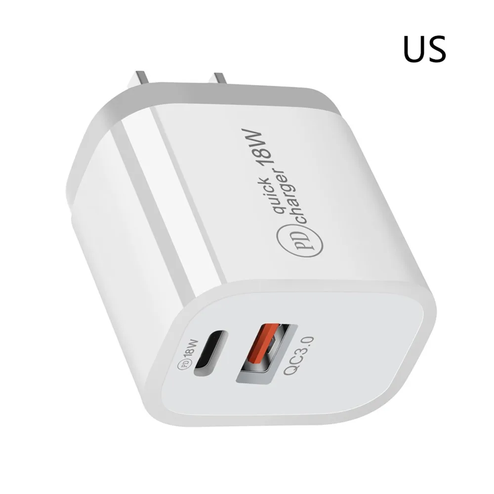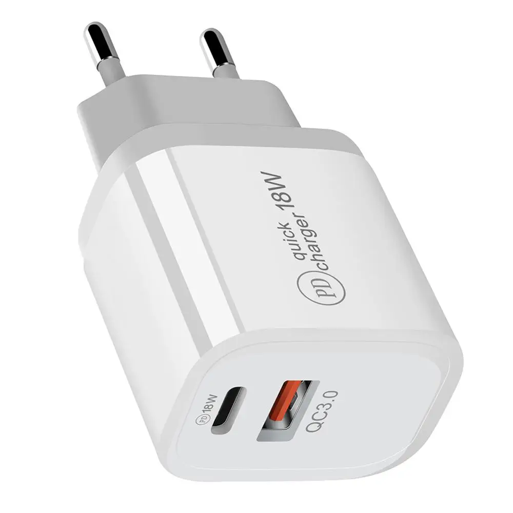 Сетевое зарядное устройство PD QC 3,0 с двумя USB-портами, 18 Вт