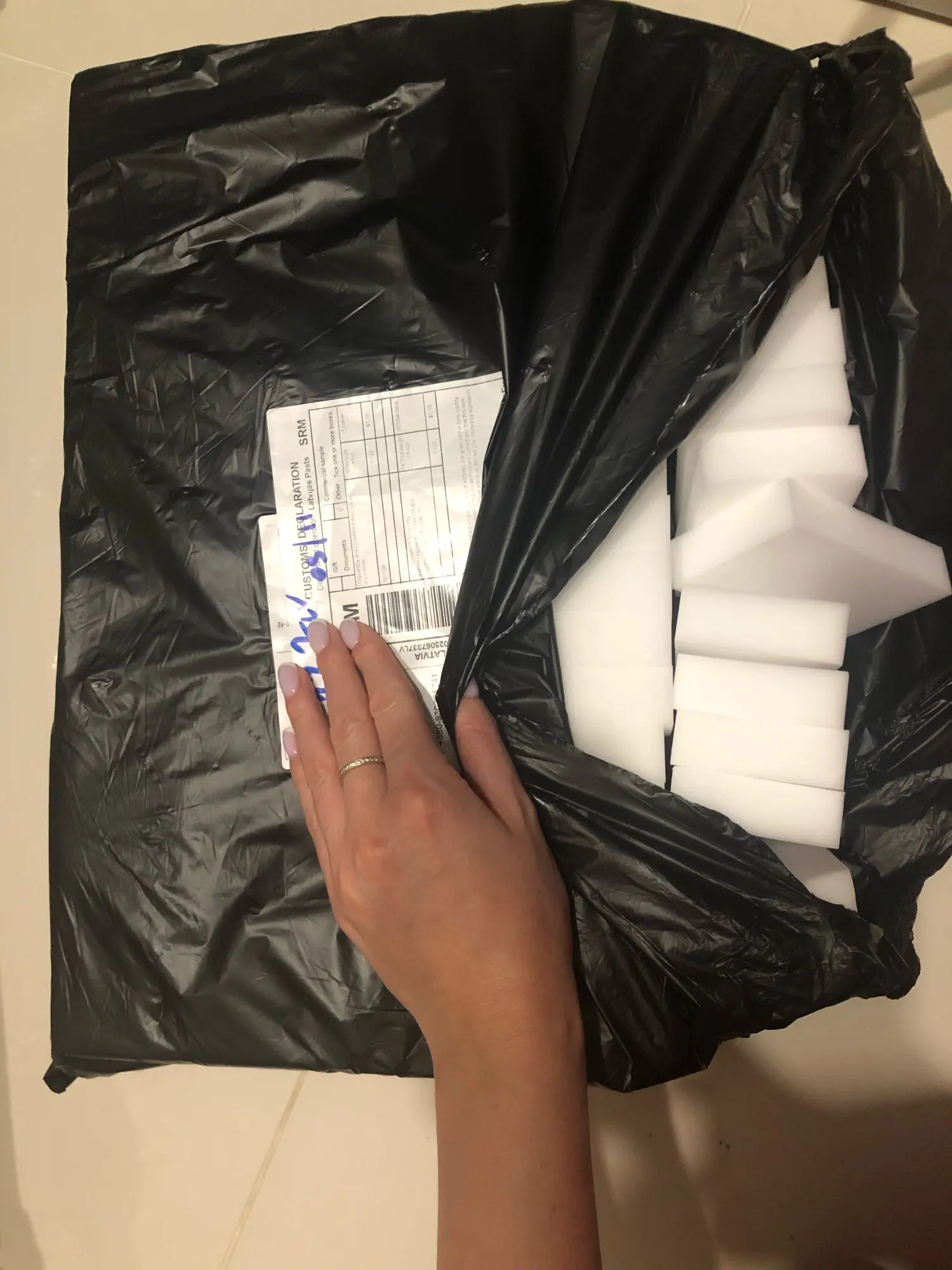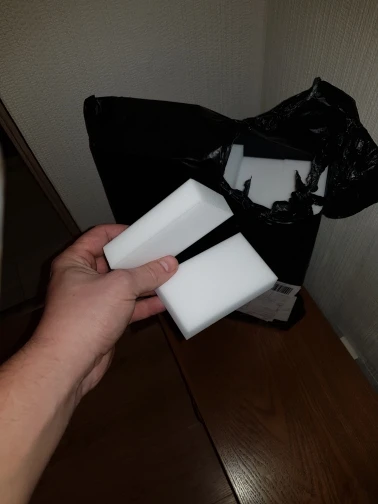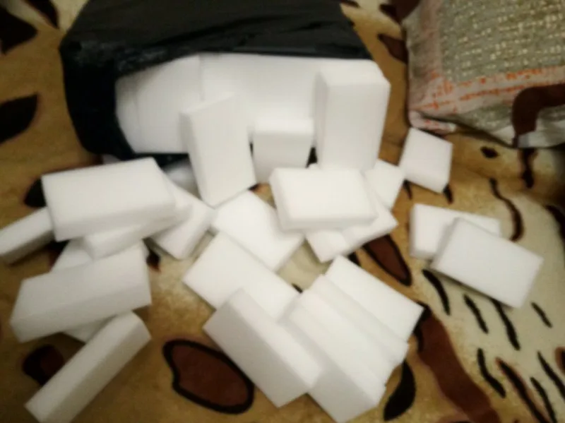Отличный продавец, с супер быстрой доставкой! Комплект 100 шт в отдельном пакете, помимо почтового. Эти губки просто супер очистители. Только перчатки одевайте, если предполагается долгий контакт кожи с губкой.