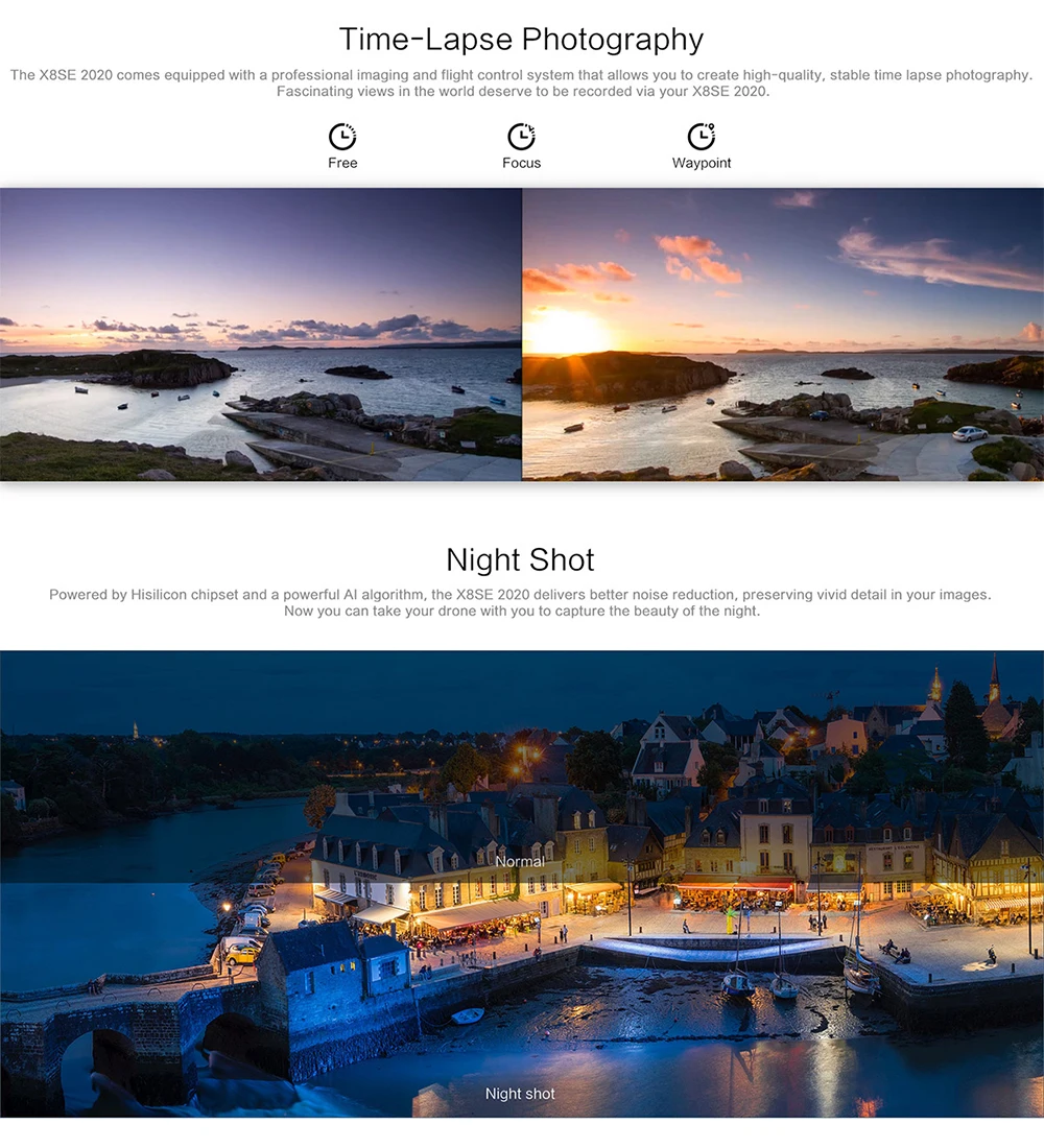 1. Благодаря складной и портативной конструкции Дрон легко носить с собой.2. 3-осевой механический шарнир: сочетает светильник 3-осевой механический шарнир с новейшими профессиональными алгоритмами управления, сверхплавное видео без желе даже при высокой скорости и сильном ветре.3. Видео и фото HDR: Поддержка видео с высоким динамическим диапазоном. FIMI X8SE 2020 делает ваши снимки более яркими, сохраняя оригинальные детали светильник лые и цветные тона вашей сцены или объекта. Таким образом, его возможности HDR выводят визуальный опыт любого создателя на совершенно новый уровень.4. Ночная съемка: вы можете взять с собой Дрон, чтобы запечатлеть красоту ночи.5. HEVC: видео, снятое в коде H.265/HEVC, сохраняет качество и детали, занимая при этом на 40% меньше места для хранения по сравнению с видео, снятым в H.264/AVC6. Позиционирование оптического потока 30 М: новейшая система позиционирования использует обратную камеру, чтобы Дрон стабильно зависал на расстоянии до 30 м даже без GPS.7. Время полета до 35 минут с липовым аккумулятором 11,4 в, 4500 мАч.8. Дальность 8 км: увеличение чувствительности на 5 дБ обеспечивает большее расстояние передачи до 8 км Функция: видео 4K, 100 Мб/с, расстояние 8 км, 3-осевой стабилизатор, видео и фото HDR, Интеллектуальный режим отслеживания, позиционирование оптического потока 30 м, режим без головы, режим Follow me Посылка1 х RC Квадрокоптер (с камерой)1 передатчик1x11,4 в 4500 мАч Lipo аккумулятор3 x USB-кабеля4 x пропеллер1 x кабель переменного тока1 зарядное устройство2 х руководство