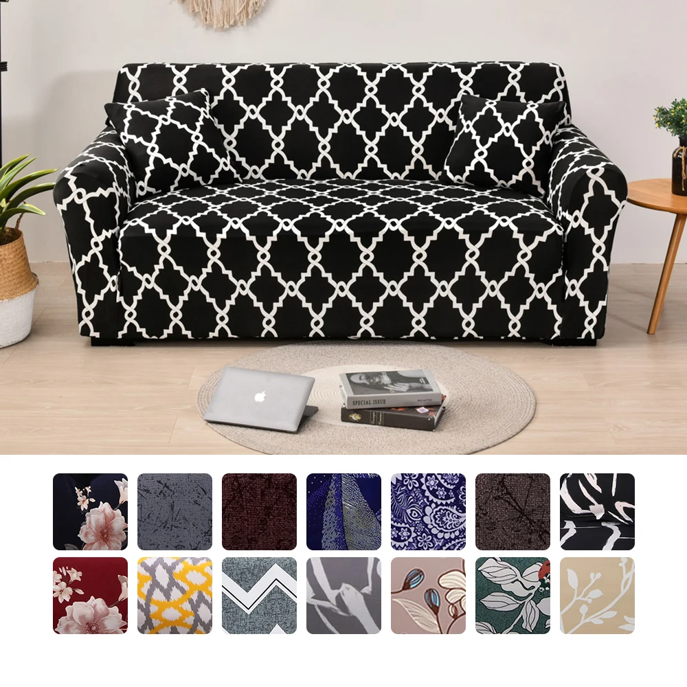 Эластичный чехол для дивана, 1234 места с принтом, L-образный чехол для гостиной, защита для дивана, моющийся чехол для мебели