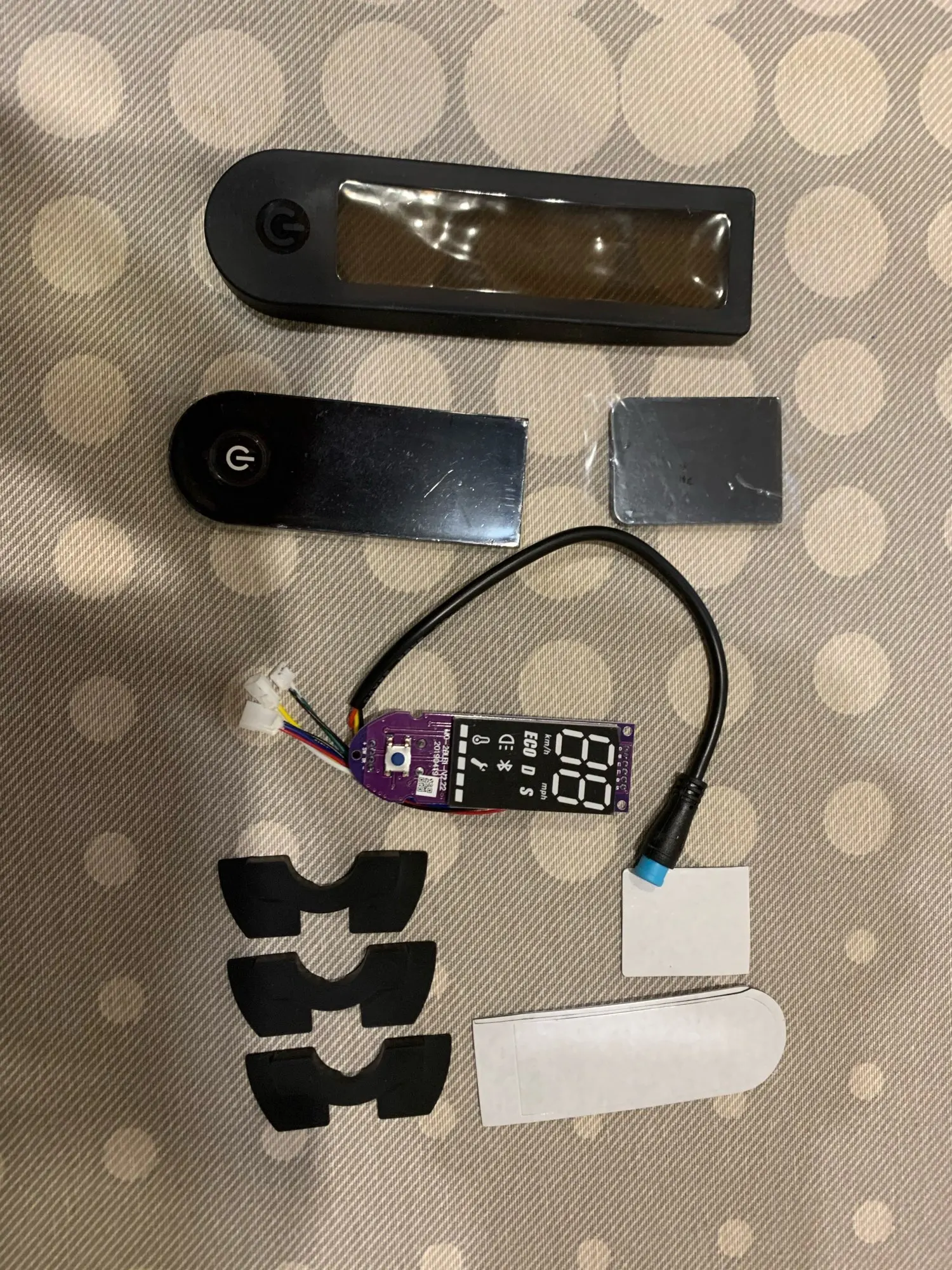 подошло на оригинальный m365. работает! в комплекте новое стекло и плёнка, чтобы его приклеить. покупкой доволен, можно за час самому прокачать самокат