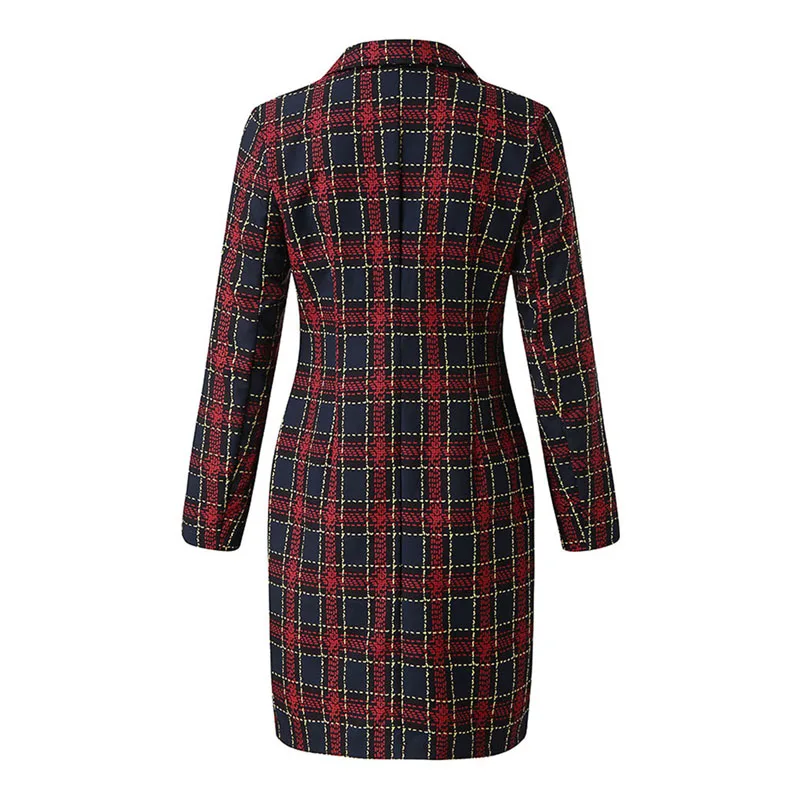 Модное осеннее двубортное пикантное облегающее платье в стиле ретро для женщин офисное женское элегантное теплое длинное пальто