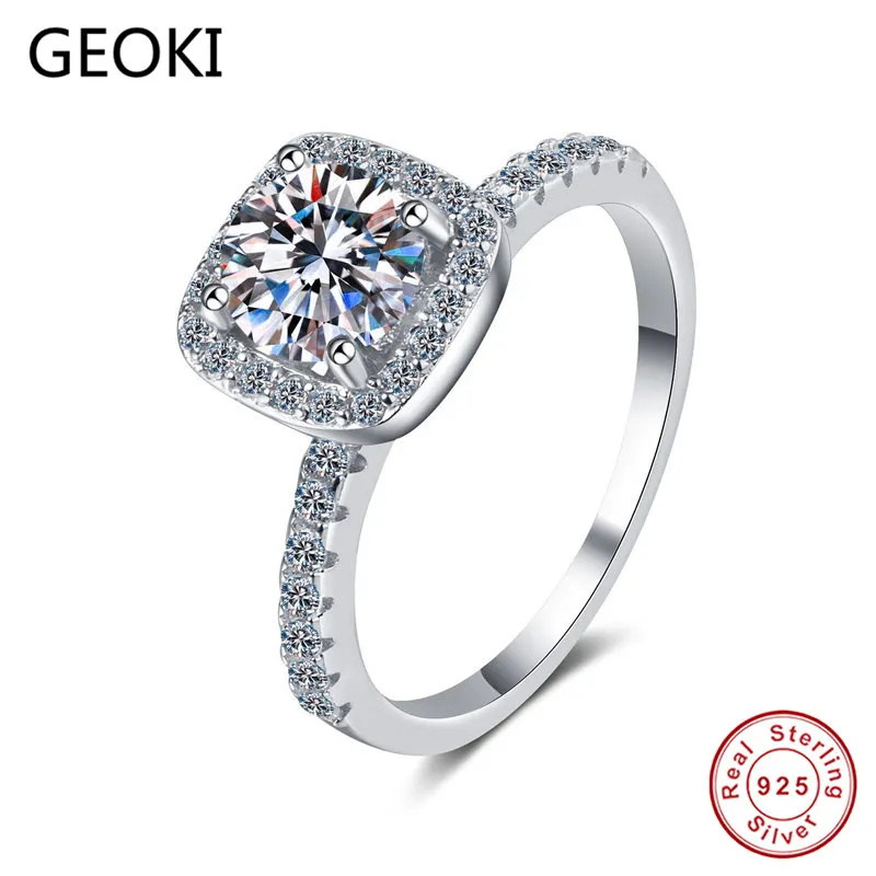 Женские кольца с муассанитом Geoki VVS1, из стерлингового серебра 9...