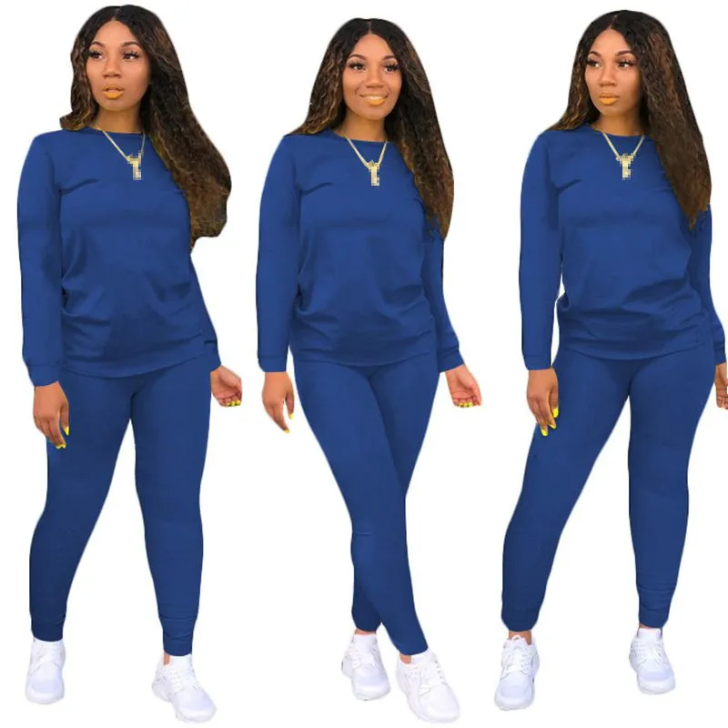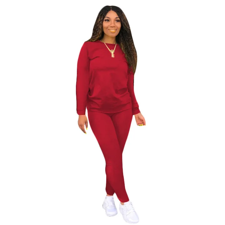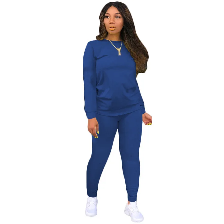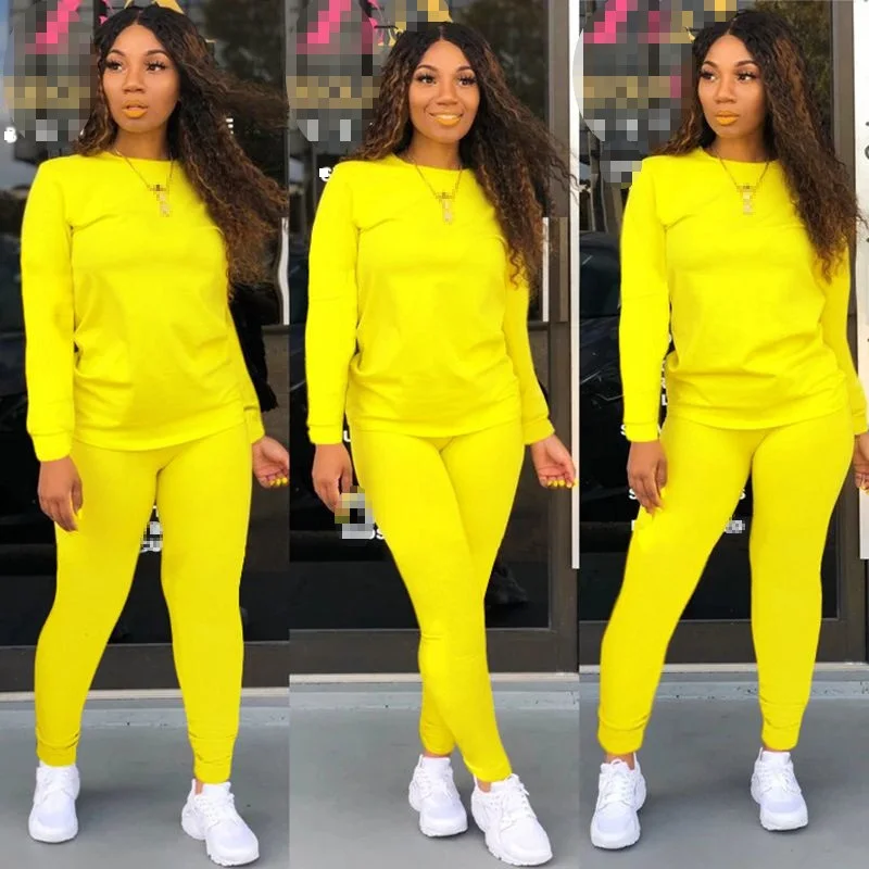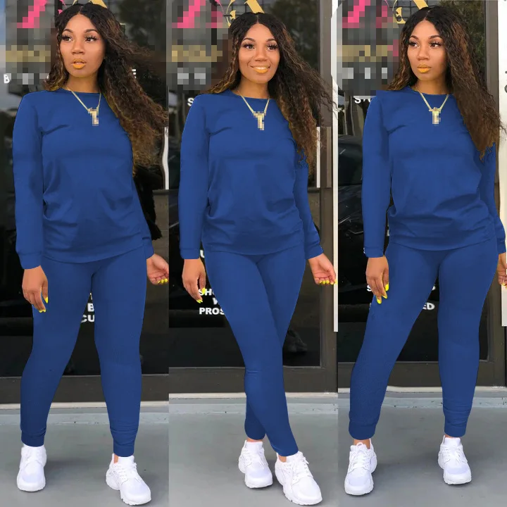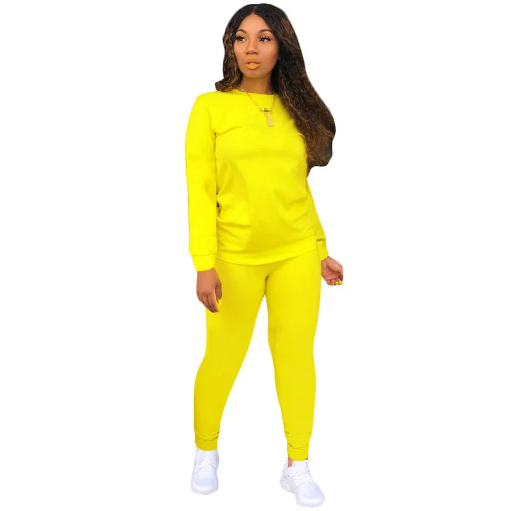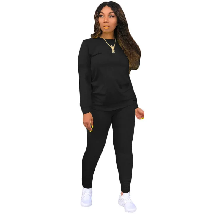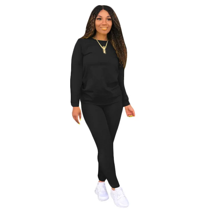 Женский спортивный костюм, комплект из двух предметов, пуловер и штаны, с круглым вырезом, Женский комплект 2 шт.
