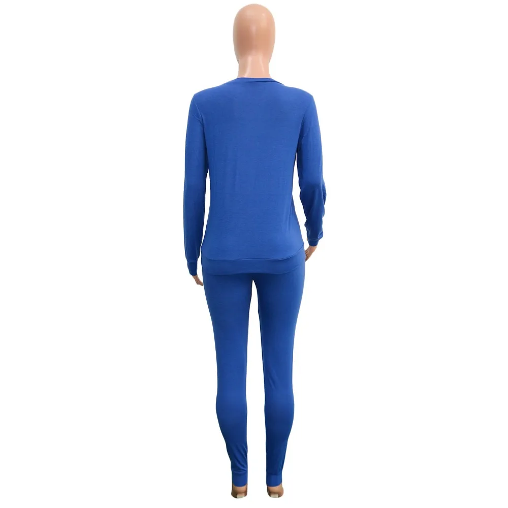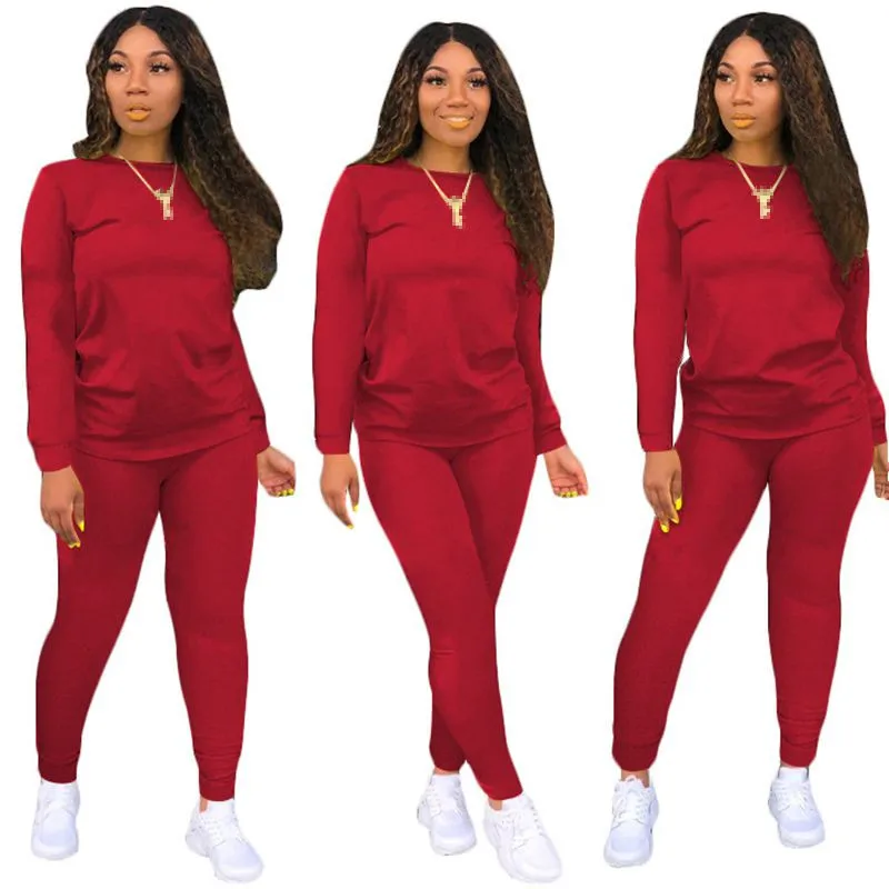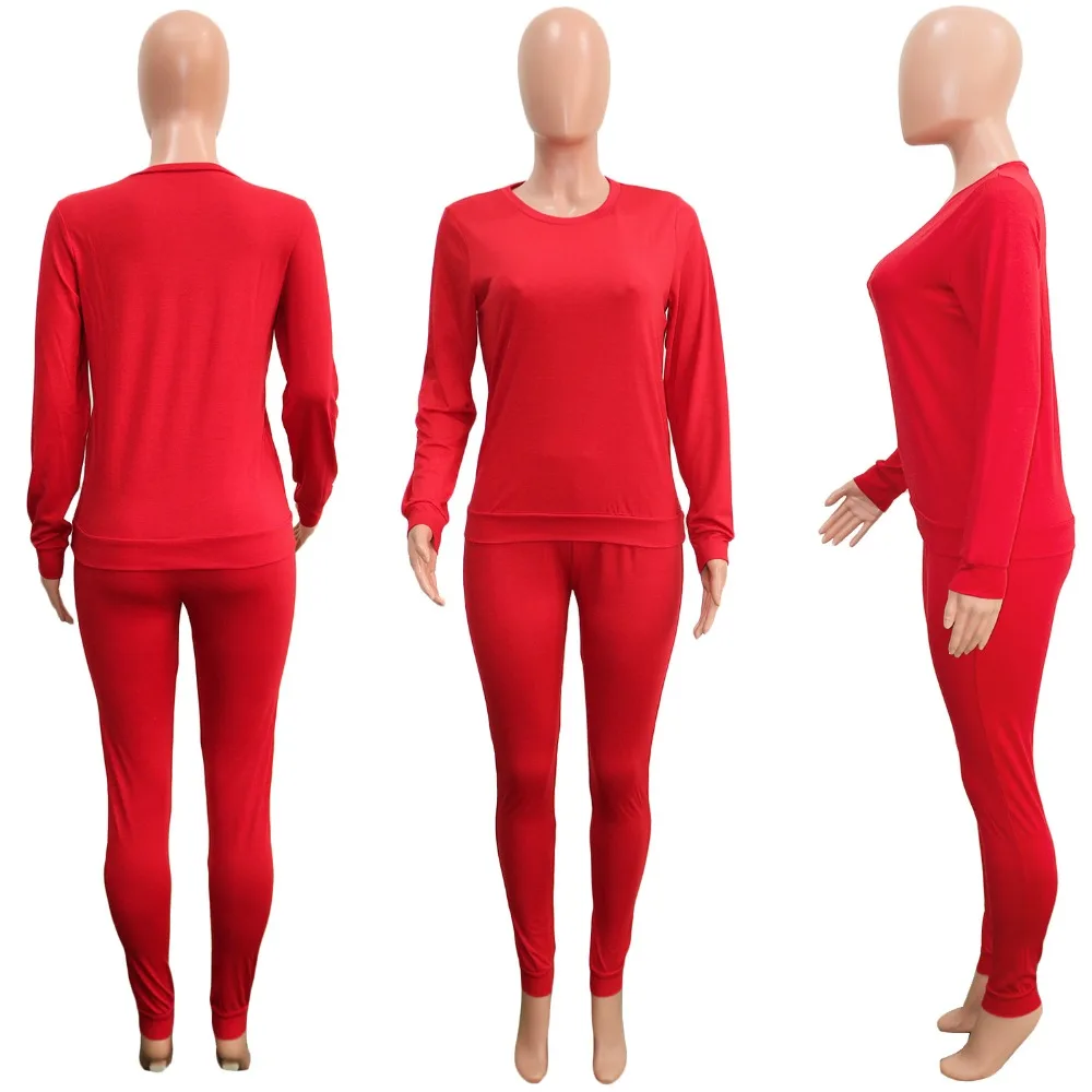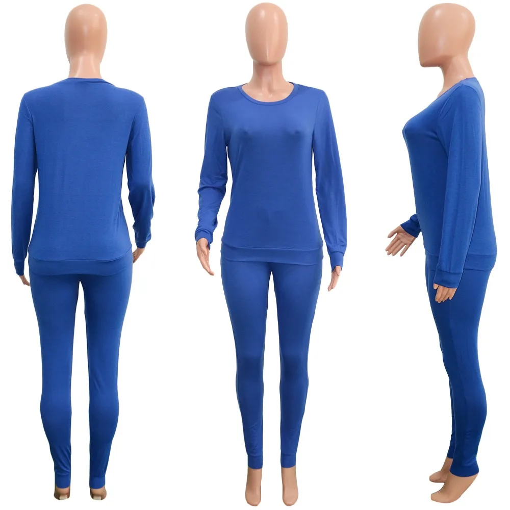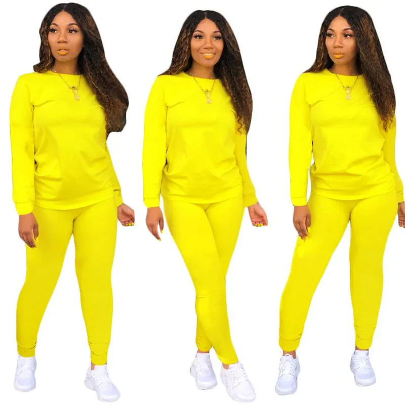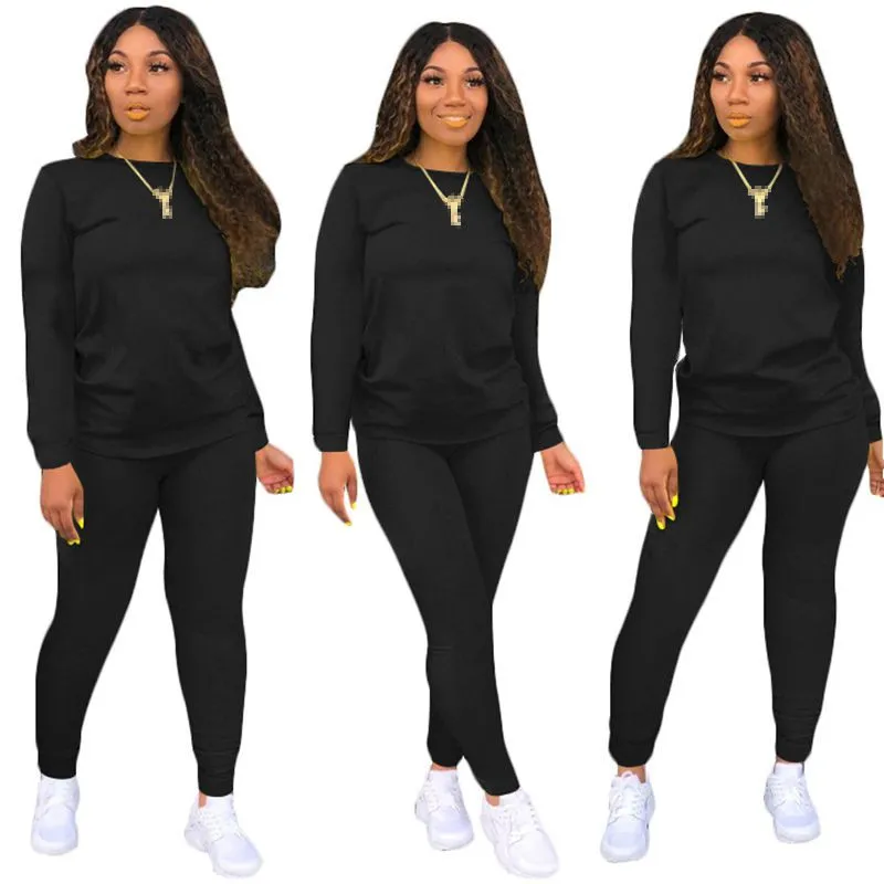 Женский спортивный костюм, комплект из двух предметов, пуловер и штаны, с круглым вырезом, Женский комплект 2 шт.