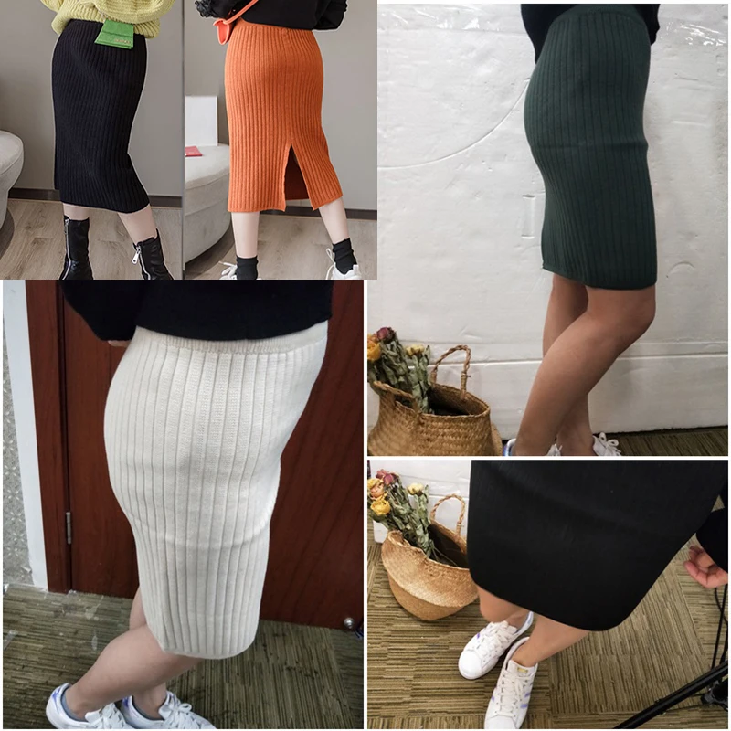 Юбка-карандаш Женская трикотажная эластичная с разрезом и высокой талией