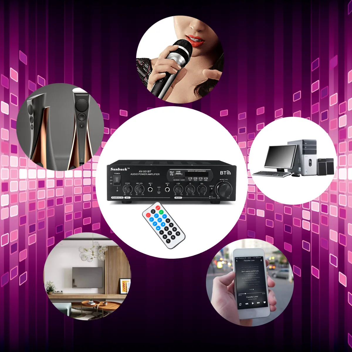 SUNBUCK 2500 Вт 110 В220 В bluetooth двухканальный караоке микрофон вход Цифровой ревербератор стерео усилитель Поддержка USB SD FM AUX вход 12 В