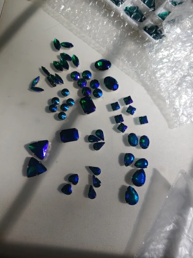 (8x13 мм капля, 7x15 мм маркиз, 4x15 мм маркиз, 10 мм Rivoli, 8 мм квадрат,)5x6 шт. в каждой.