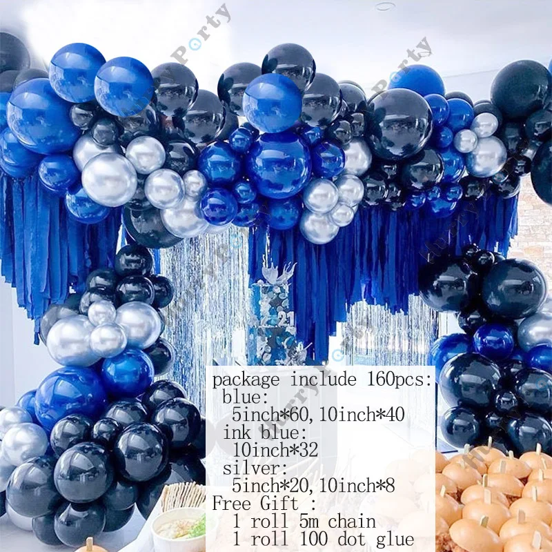 160 шт., воздушные шары "сделай сам" гирлянда, Арка металлическая, серебристая, темно-синяя, Globos, 1-е дня рождения, свадьбы, годовщины, украшение для вечеринки, детского праздника