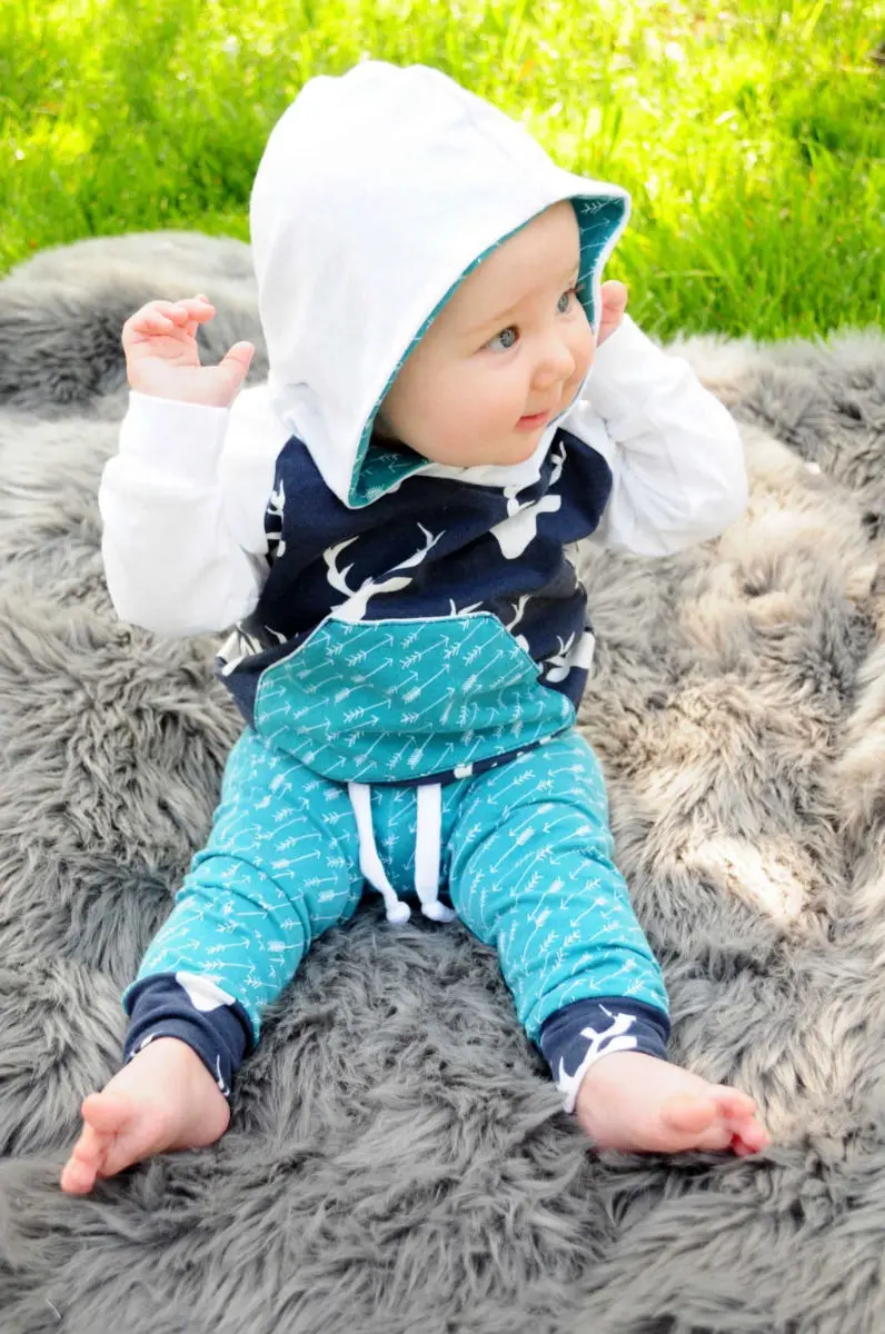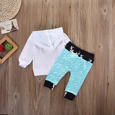 Комплект одежды для новорожденных, для маленьких мальчиков, весна-осень, топ с капюшоном и длинными штанишками с принтом в виде оленя со стрелками, комплект из 2 предметов, От 0 до 5 лет