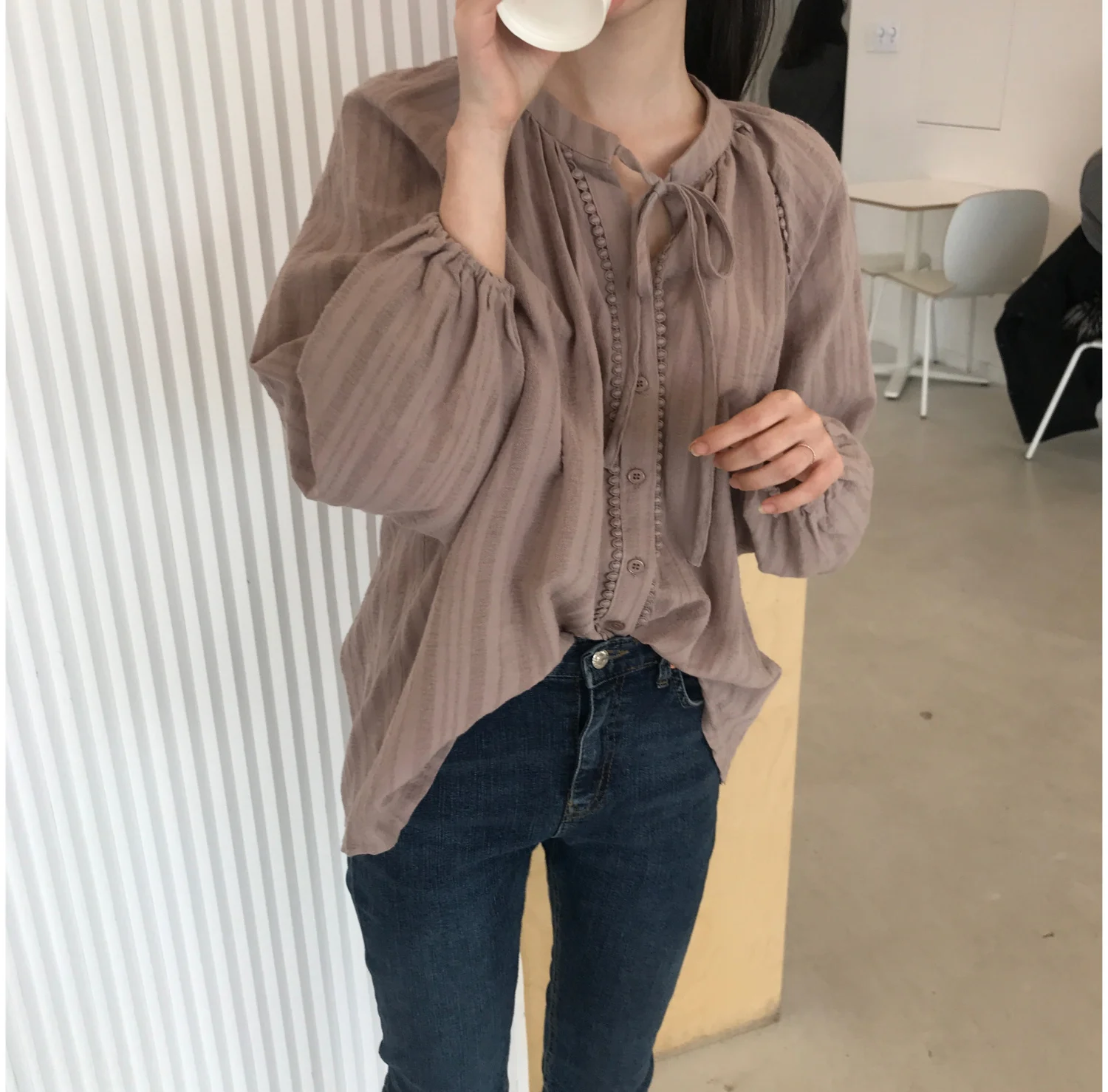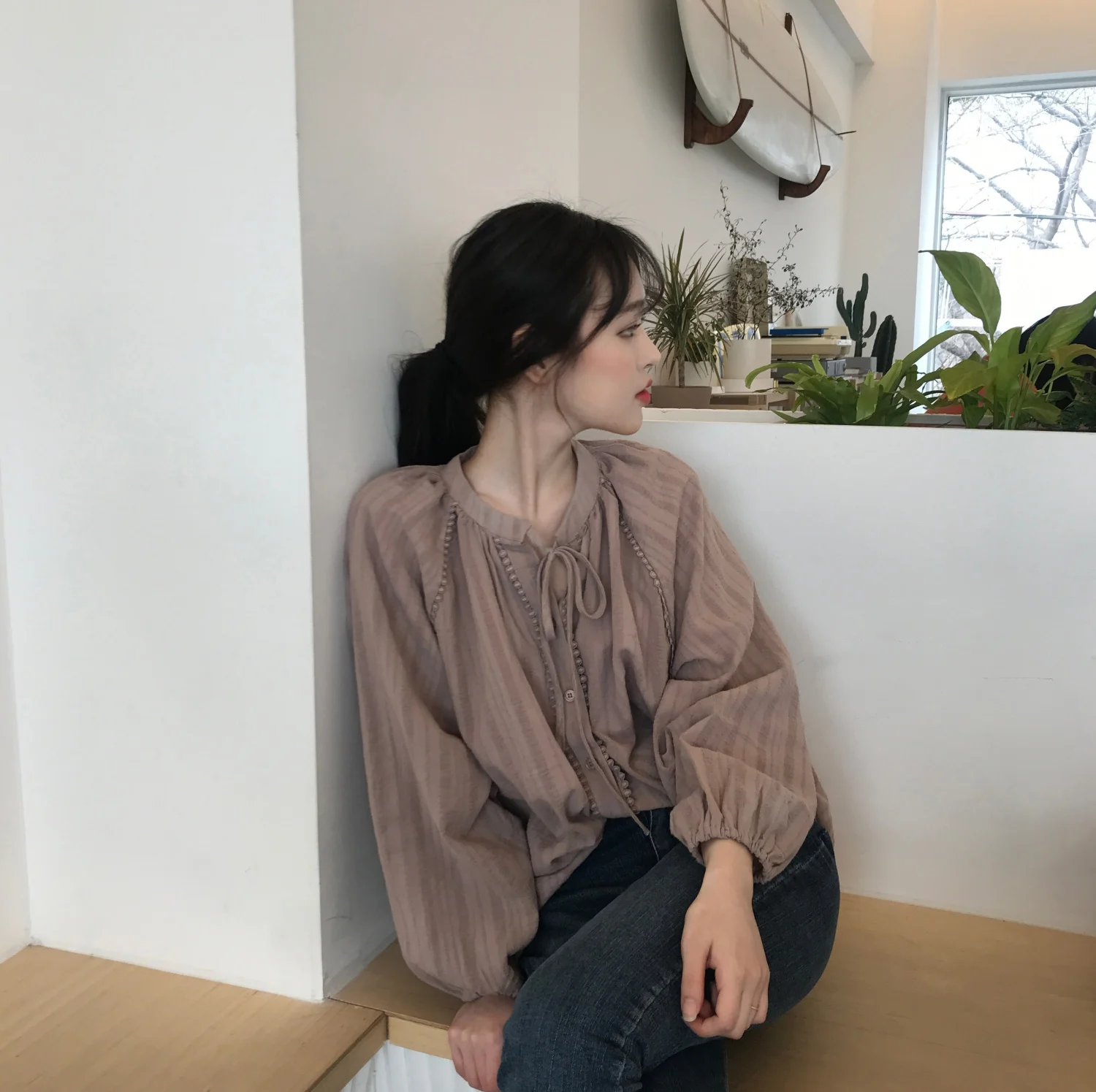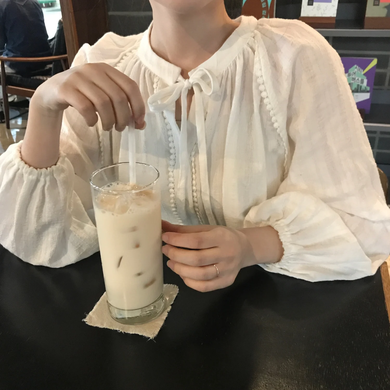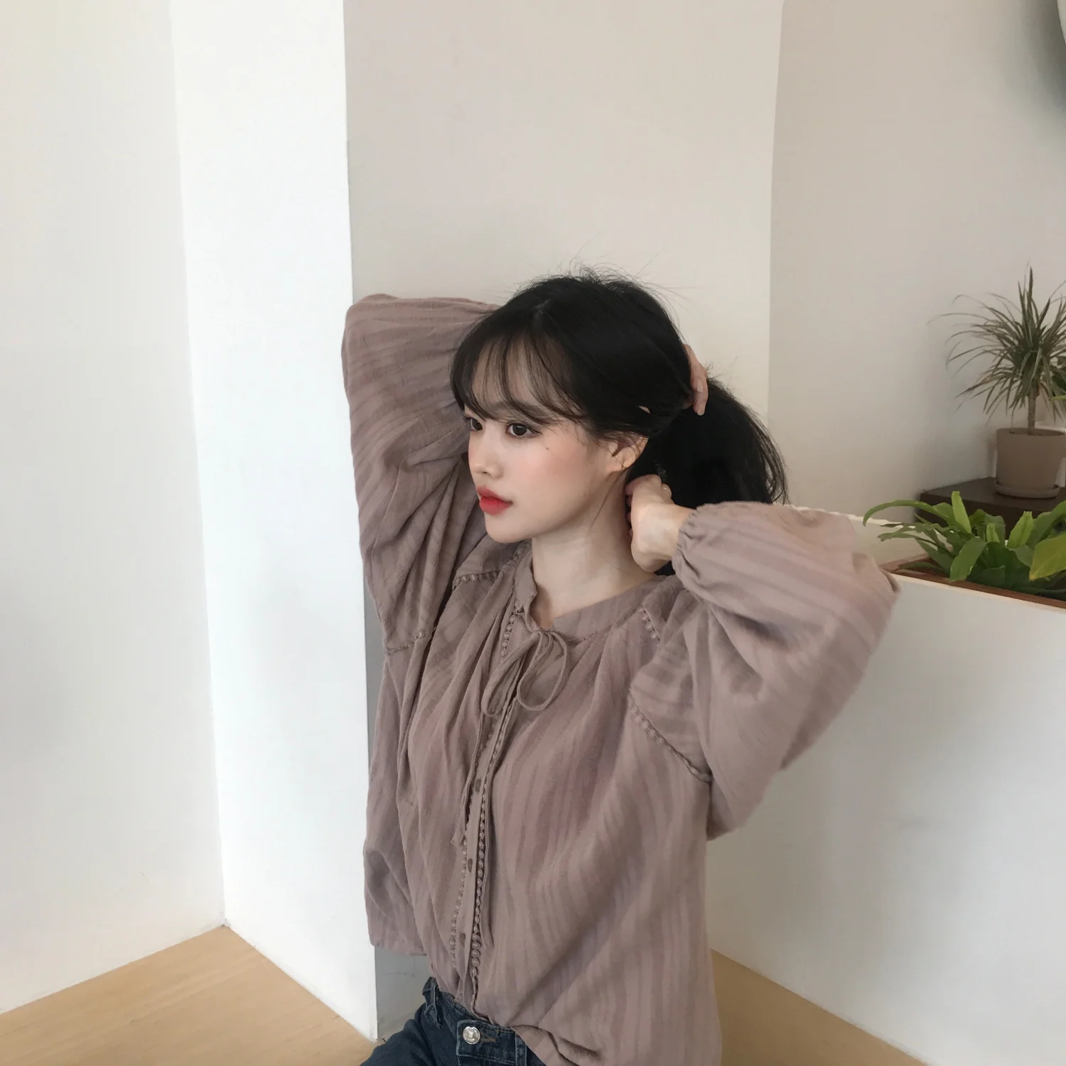 Демисезонная женская хлопковая свободная кружевная блузка с круглым вырезом, однобортная рубашка с рукавом реглан, топы на шнуровке 2020